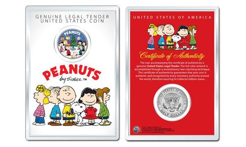 Peanuts Snoopy w Christmas Tree OFFICIAL JFK Half Dollar Coin in PREMIUM HOLDER