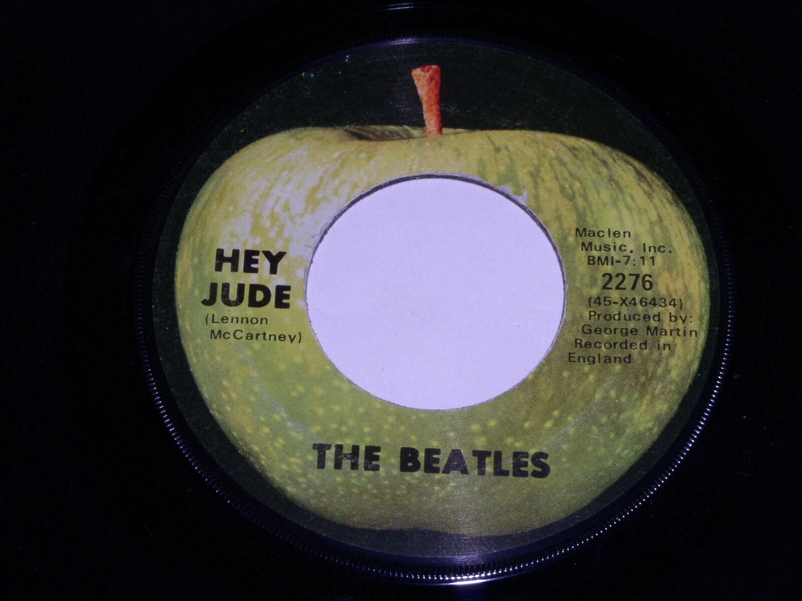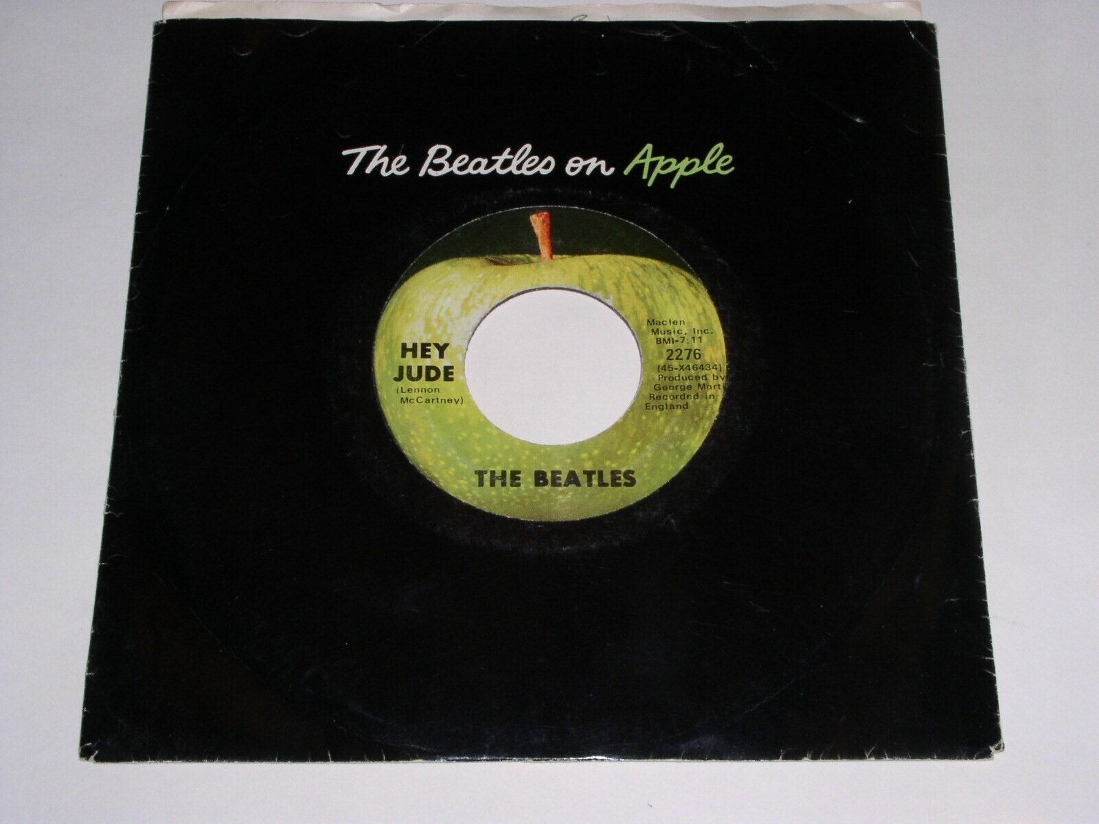 This is an original 45 rpm by The Beatles entitled, ''Hey Jude''. Flipside: "Revolution". Label 2276. Comes with the original black Apple paper sleeve, making this all the nicer. This has the Capital Records logo on the left side of label on side 2.