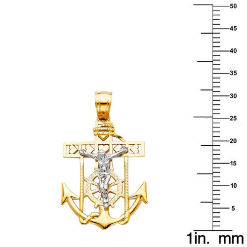Genuine 14k Two-tone Gold 0.98" Nautical Anchor Jesus Religious Pendant