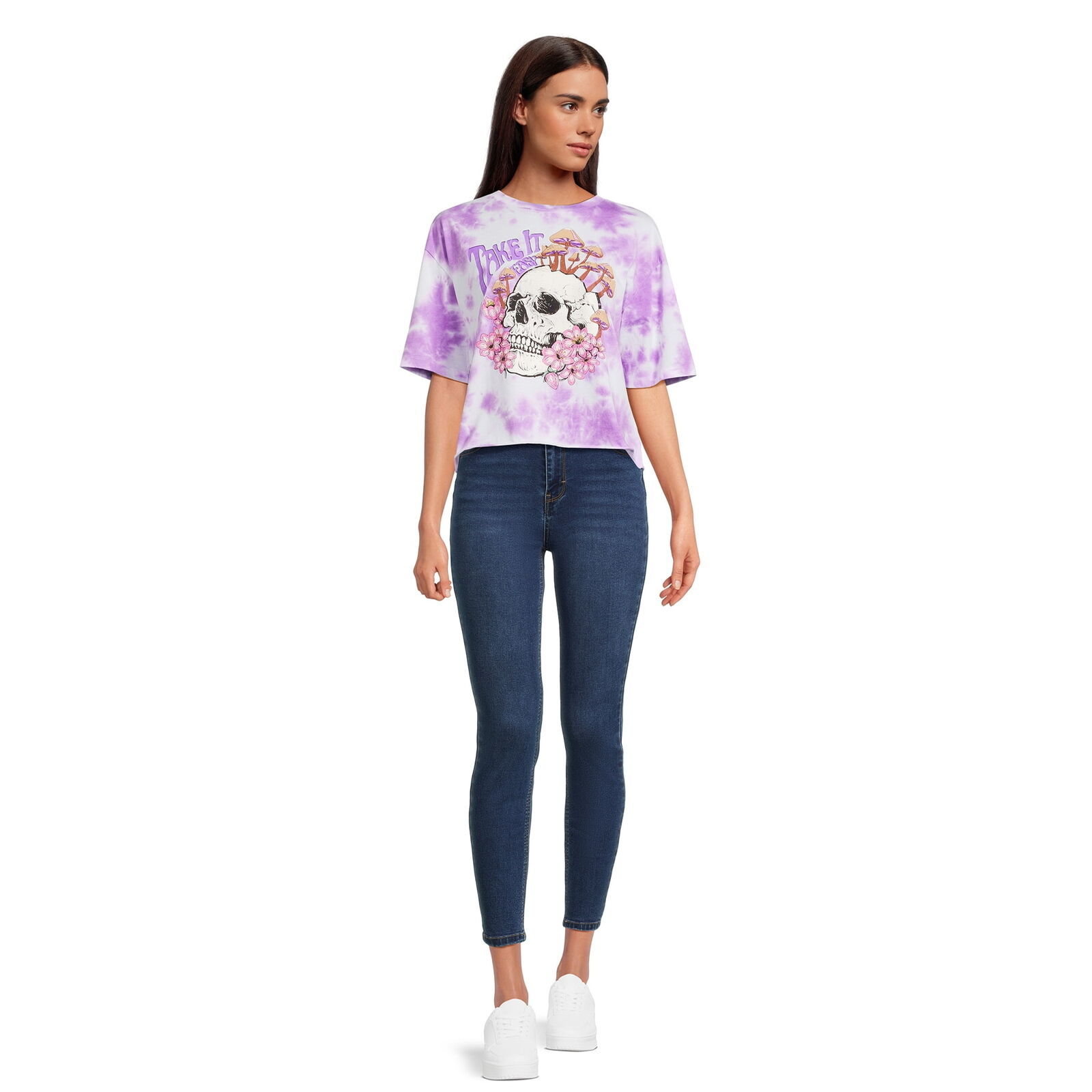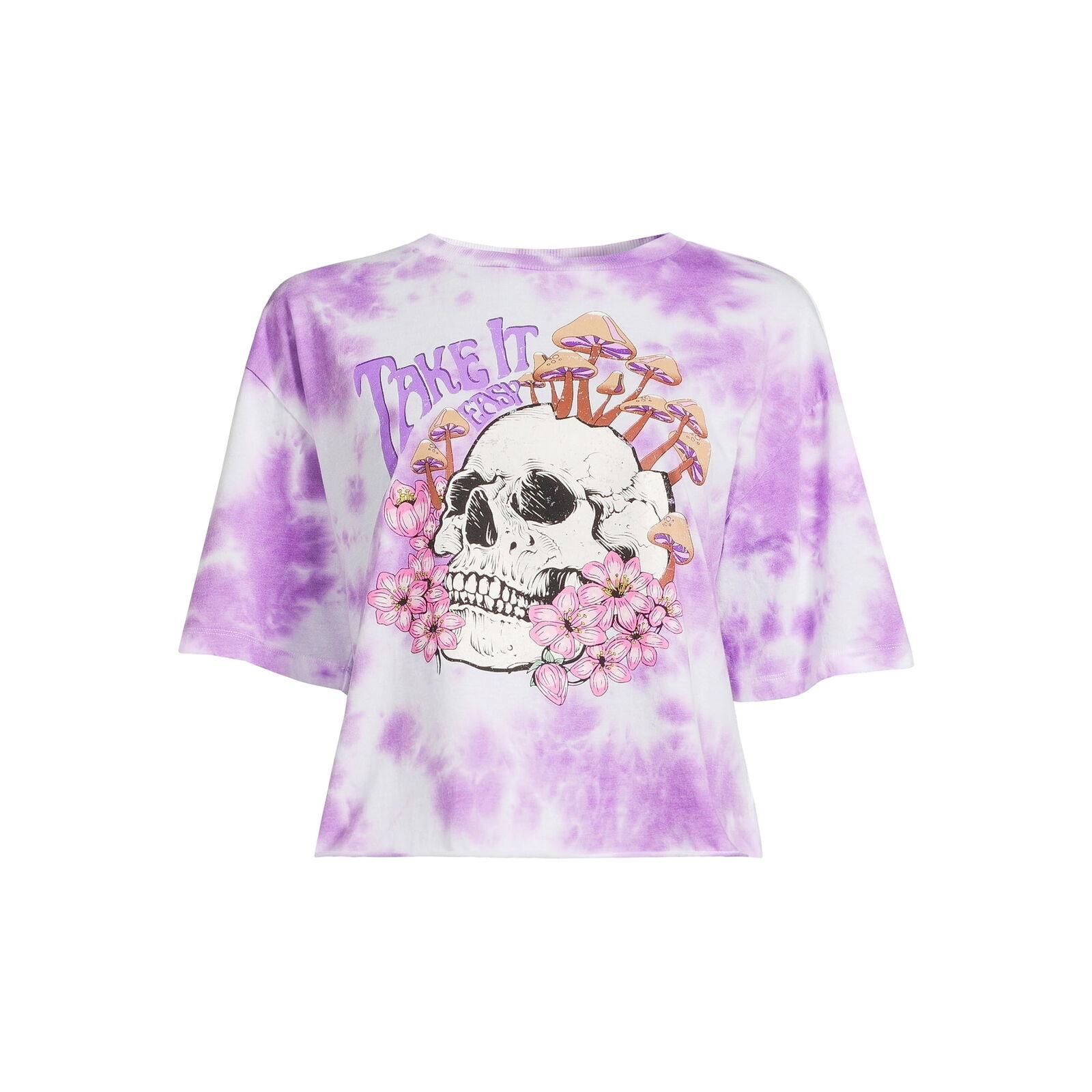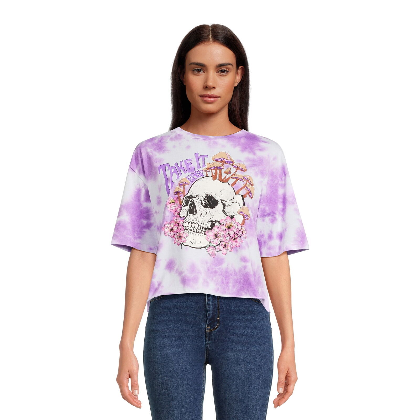 No Boundaries Cropped Graphic Tee with Short Sleeves, Size XXXL Color Lavender