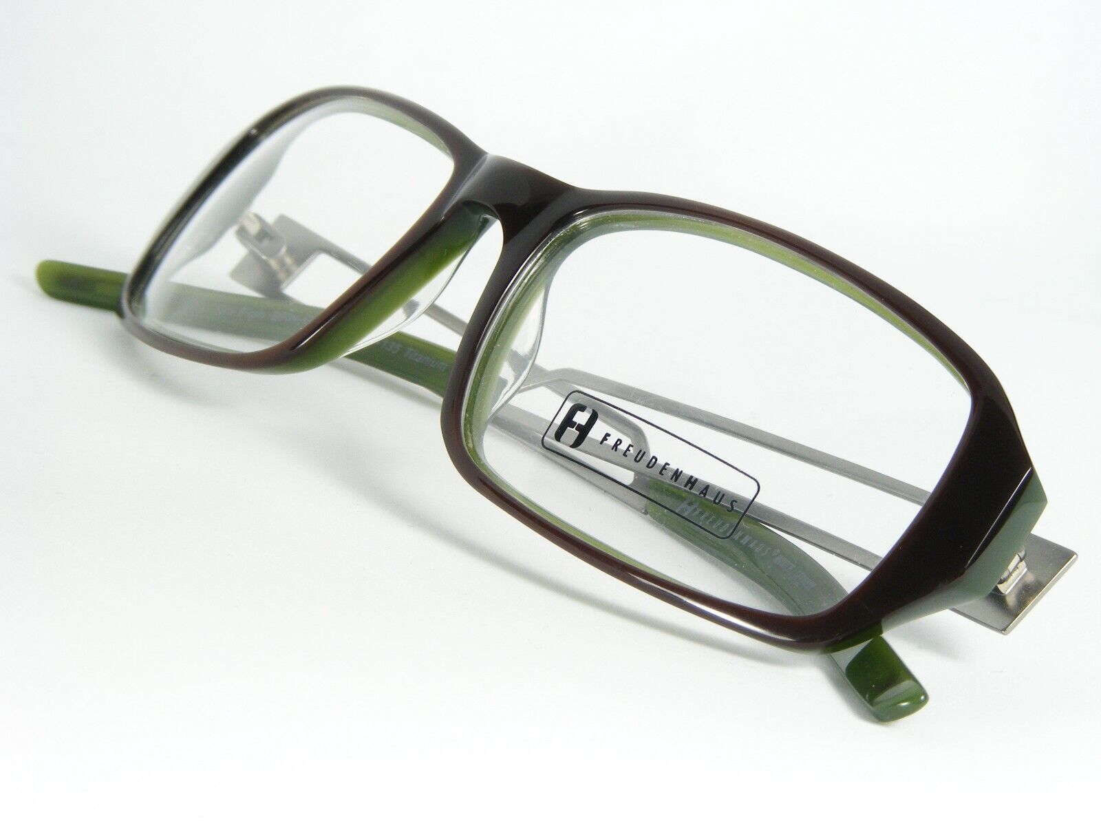 Freudenhaus Go Fish Brn-Grn Brown / Green Eyeglass Guys Frame 51-17-135 mm. (L309) Comprend: Non marque casse difficile, sac de pochettes en tissu et chiffon de nettoyage. Certains disent que les lunettes doivent etre techniquement parfaites et elles ont raison. D'autres disent que les lunettes doivent etre a la mode, a la mode, cool, elegante et chic. Bien sûr, c'est aussi correct! Mais pour les createurs, Stefan Flatscher et Uwe Pinhammer de Freudenhaus, ce ne sont pas suffisants. Ils en veulent plus. Les lunettes de Freudenhaus font partie de votre personnalite. Les rendements sont toujours gratuits pour quelque raison que ce soit. Si vous ne l'aimez pas, cliquez simplement sur "L'article n'est plus necessaire". L'article doit etre retourne dans les 60 jours comme inutilise dans l'embal