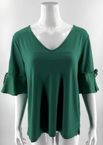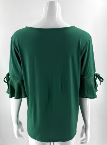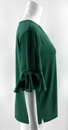 Banana Republic Green Womens Top Size Large Ruffle Flare Sleeve V Neck Stretch