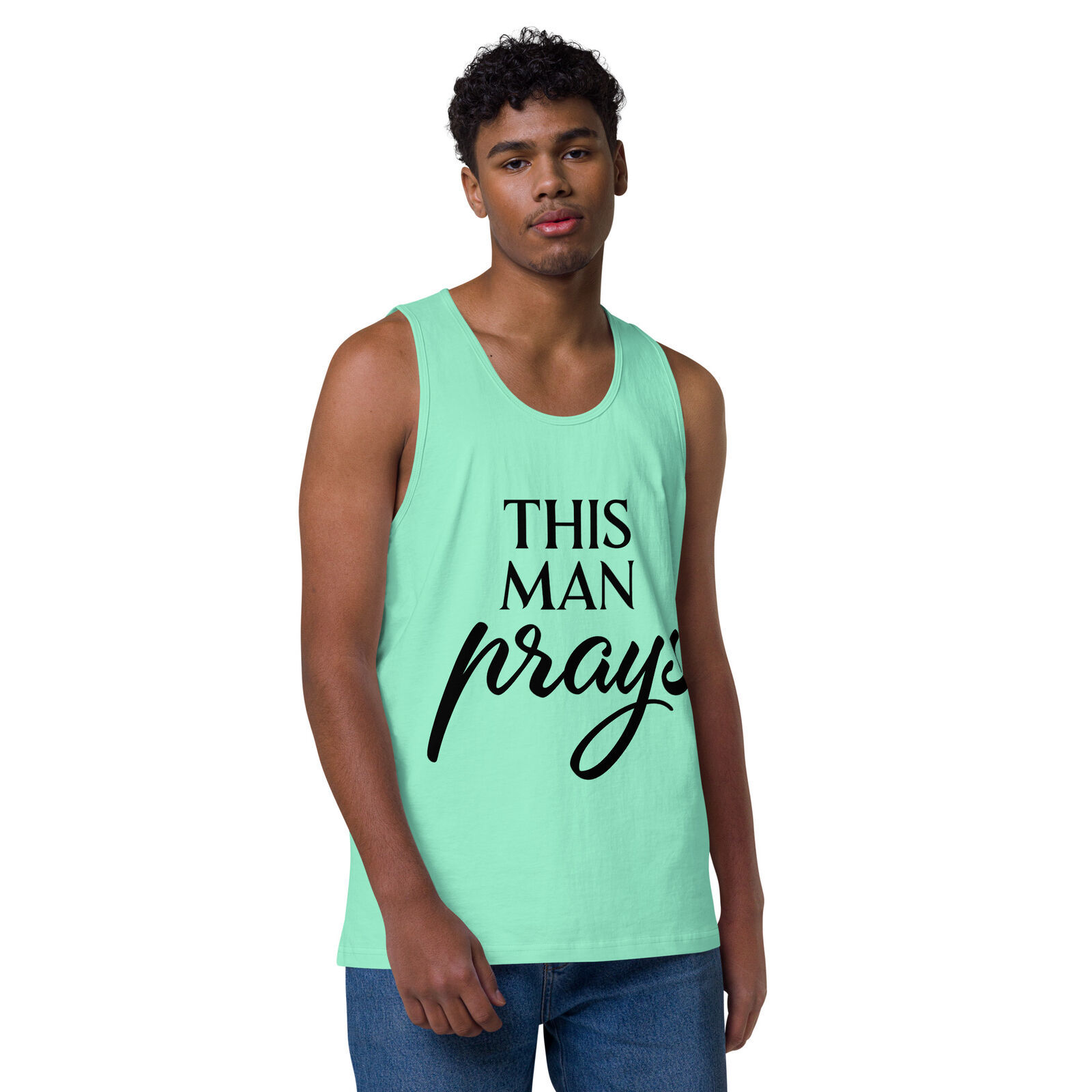 Men's Premium Cotton Tank Top – 'This Man Prays' Design by Roaring Faith Wear