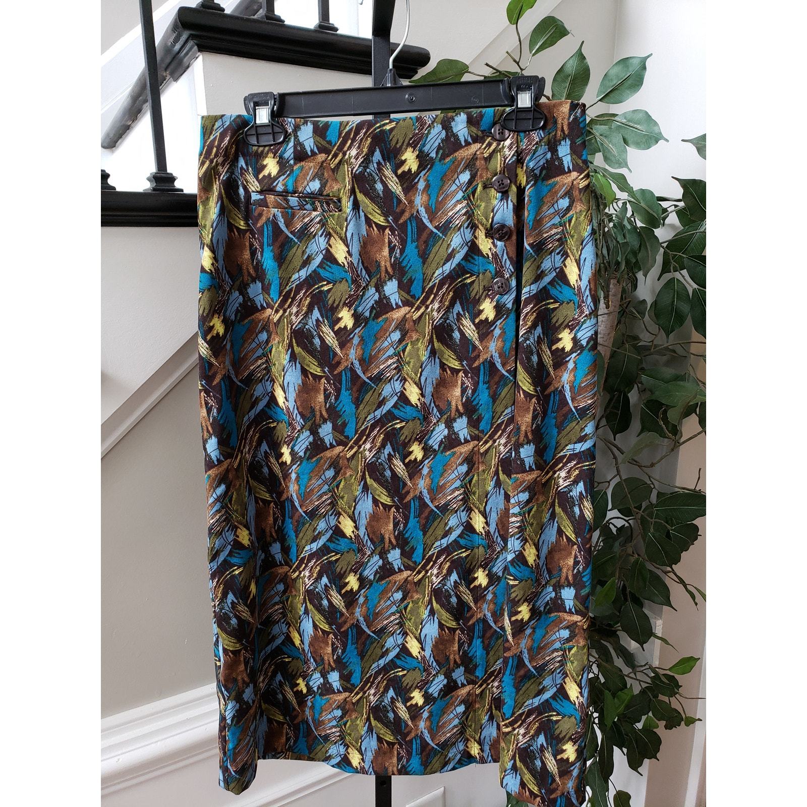 Christopher Banks Midi Skirt Womens Size 6 Multi Polyester Abstract Mod Button