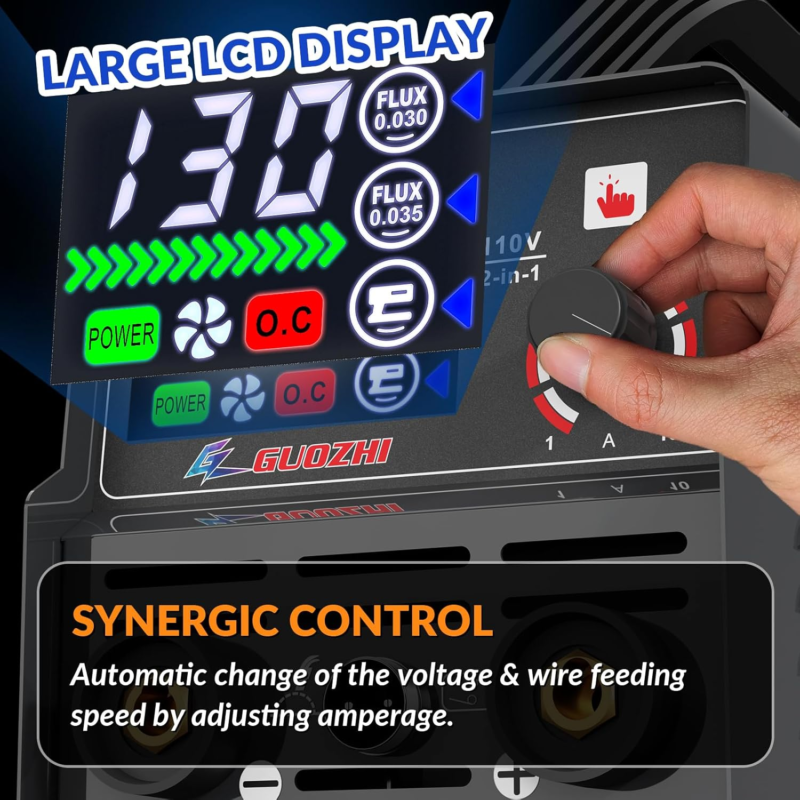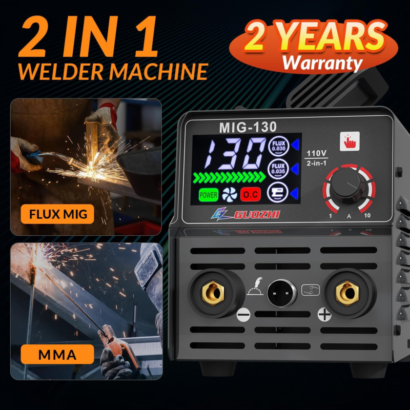 ?Upgraded Multip-rocess Welder?: GZ GUOZHI 2 in 1 MIG Welder machine, included Digital FLUX MIG/Stick functions. IGBT inverter technology, Full 40-130Amp, reliable quality and stable performance.