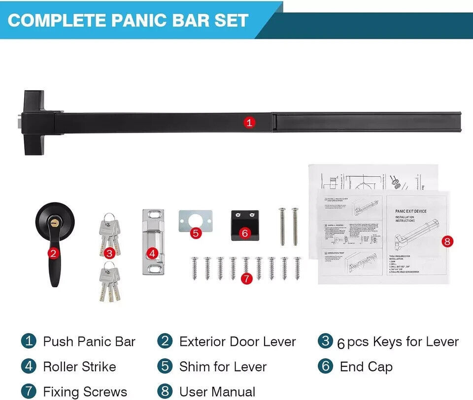 IRONWALLS Panic Bar Exit Device Black, 41” and 46 similar items