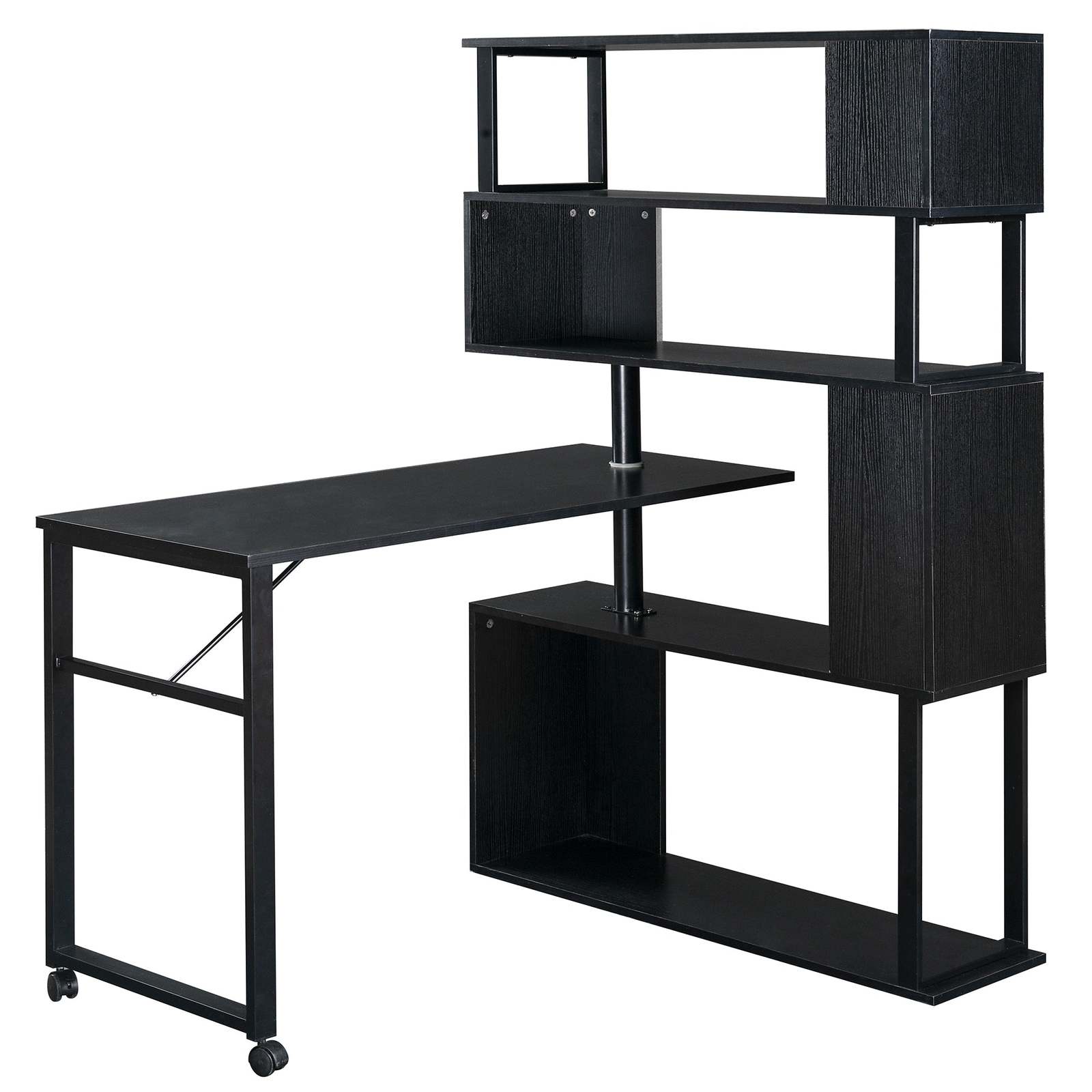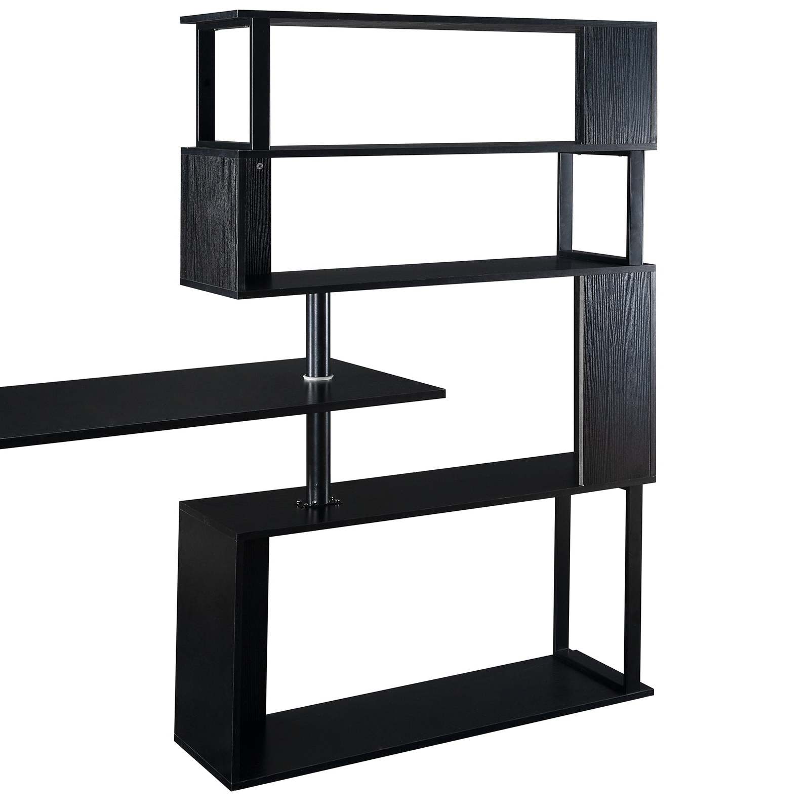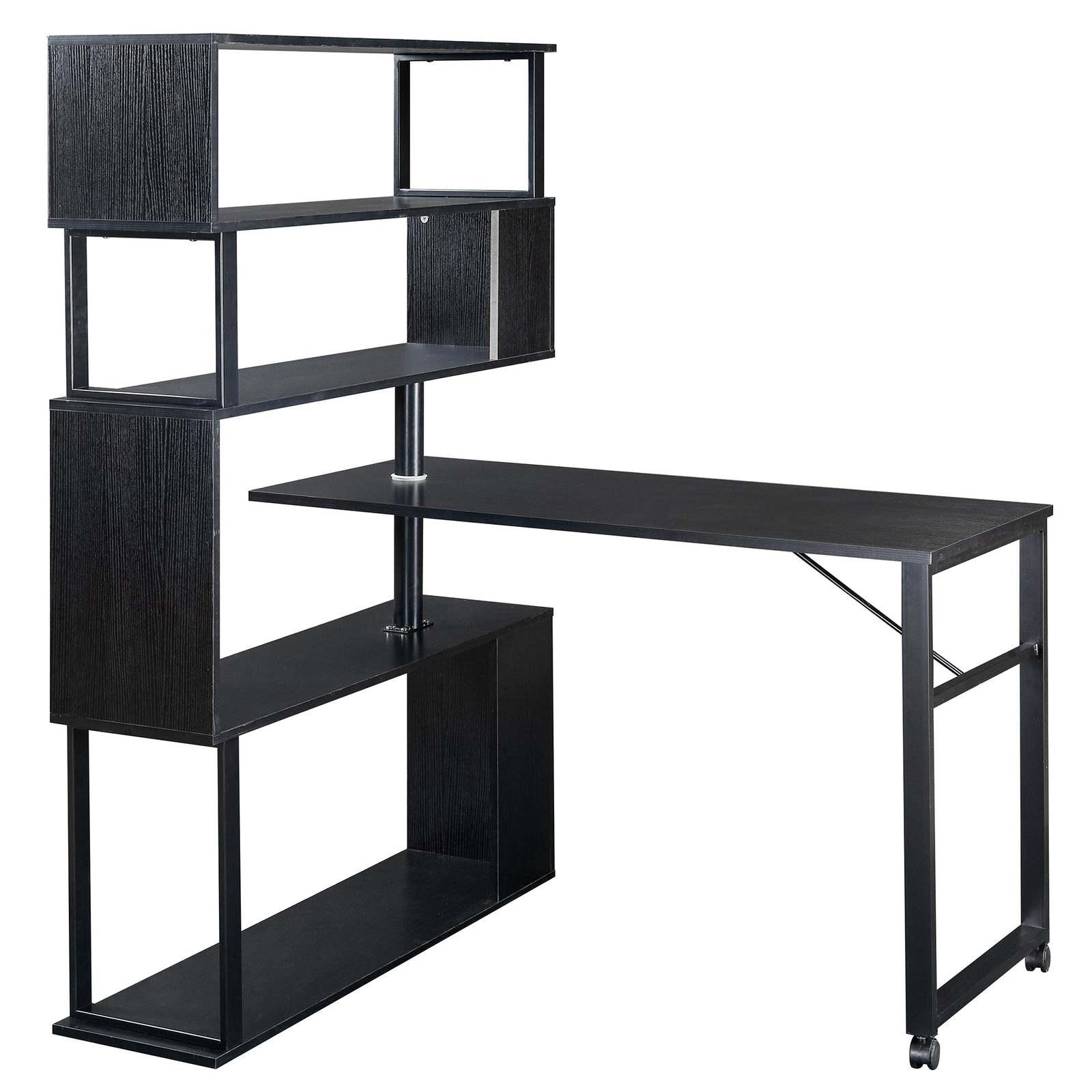 L-Shaped Corner Desk w/ Bookshelf & Wheels (Black)