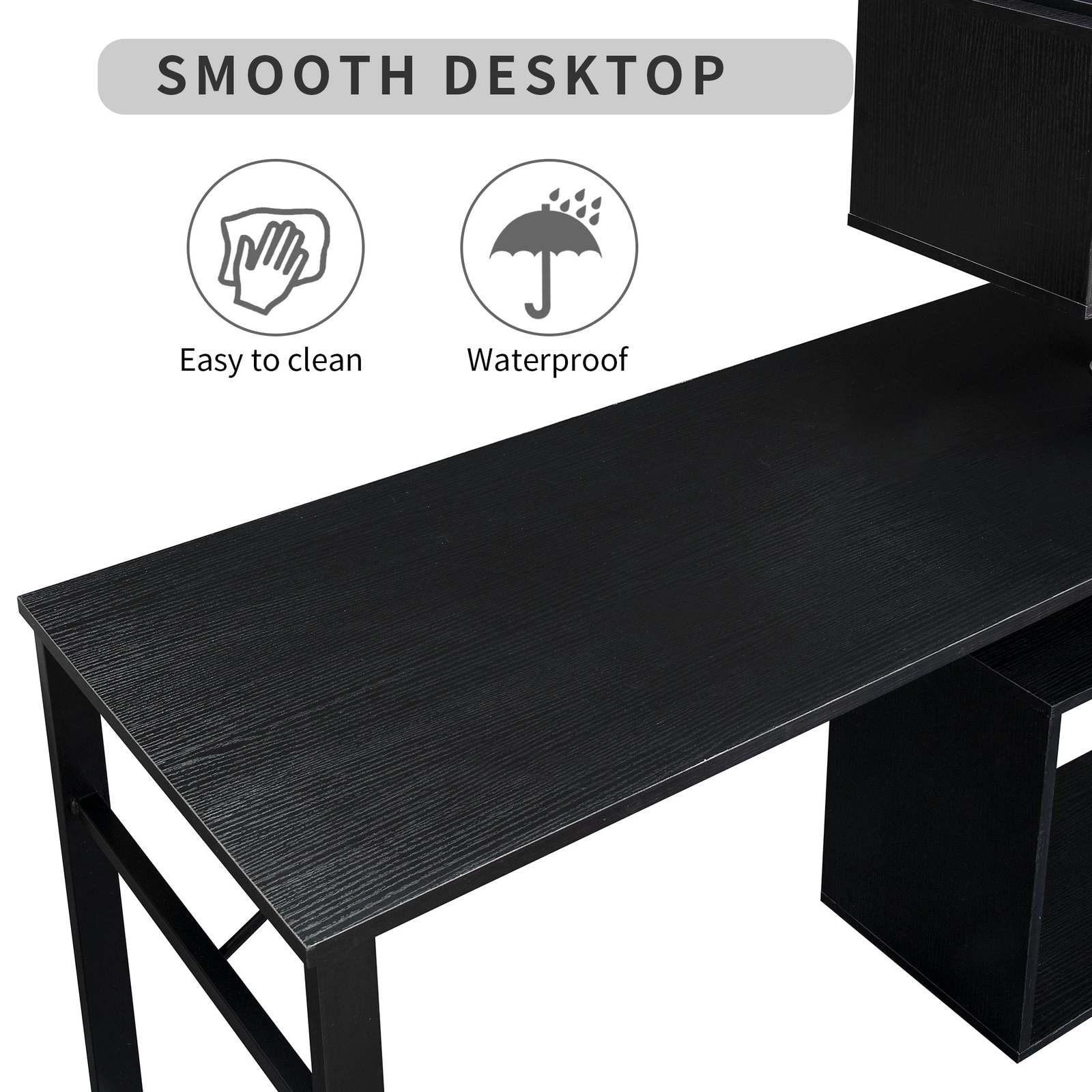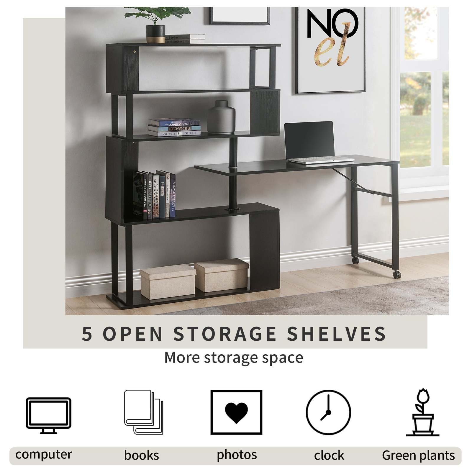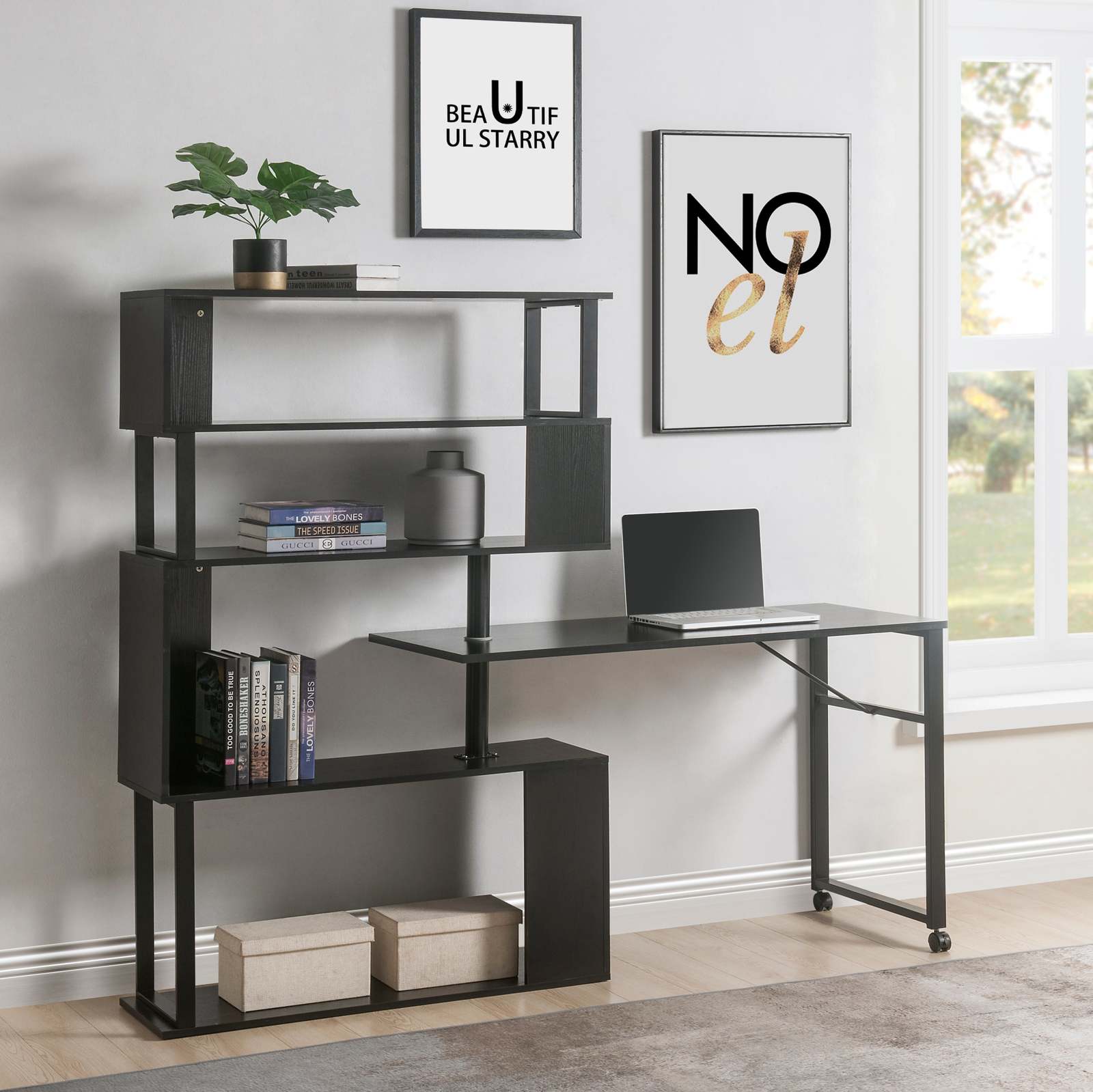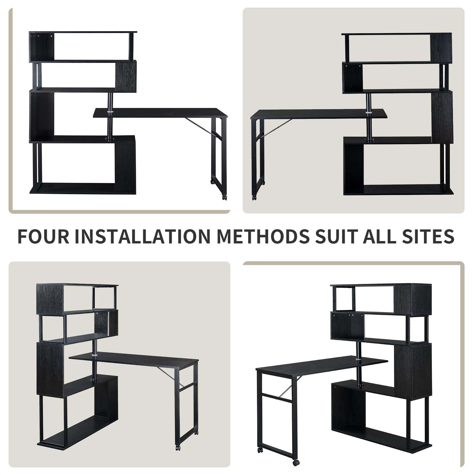 [Four Installation Methods] Design to fit your space and needs, it can be rotated into a 90-degree L-shape or a 180-degree linear shape. A unique contemporary computer desk with shelves creates a conversation piece in any room and adds a chic, functional storage display and desk in one piece of furniture.