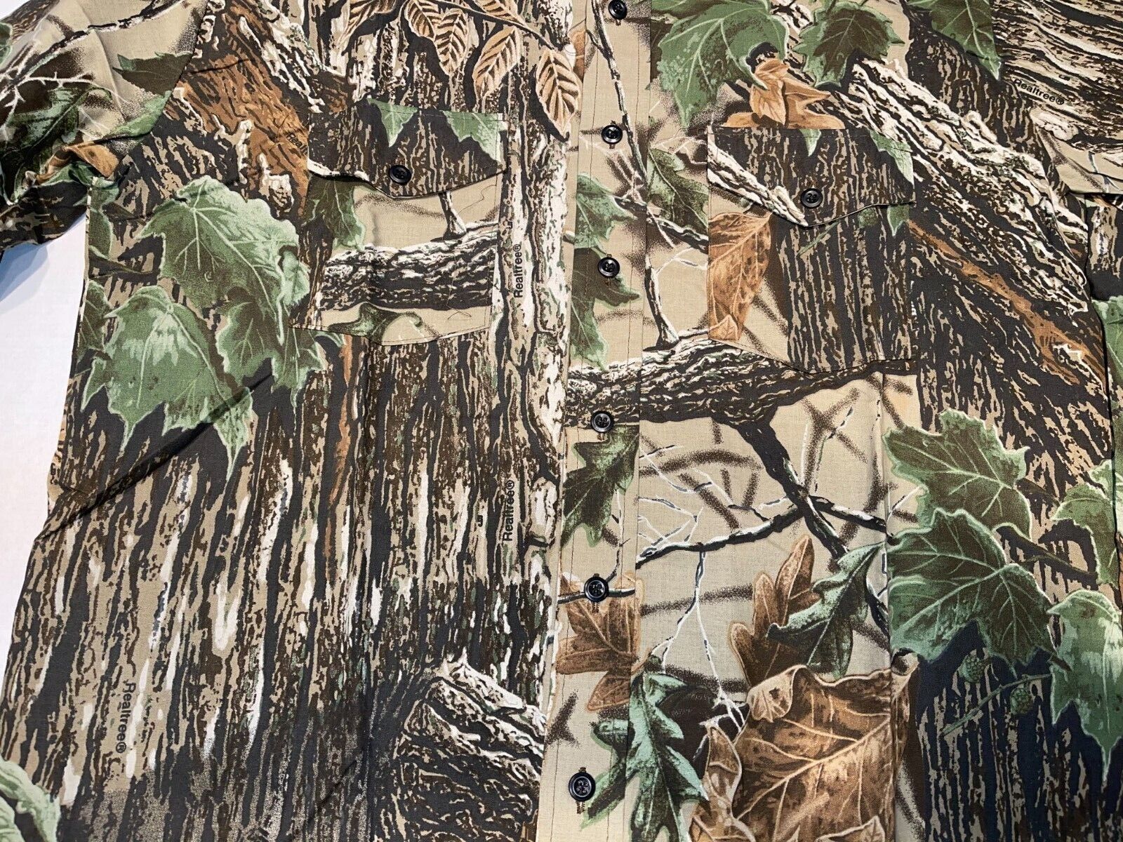 New WITH tags, this button up shirt made by Realtree. Includes a Woodland style Forest camouflage pattern located all around the shirt. This is a one of a kind shirt.