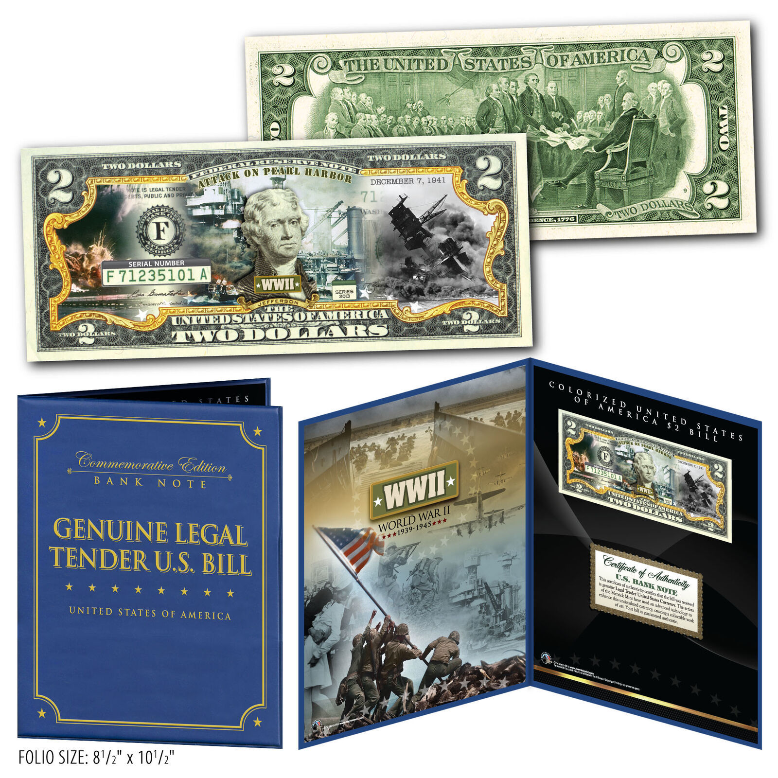 ATTACK ON PEARL HARBOR - WWII Genuine U.S. $2 Bill in 8x10 Collectors Display