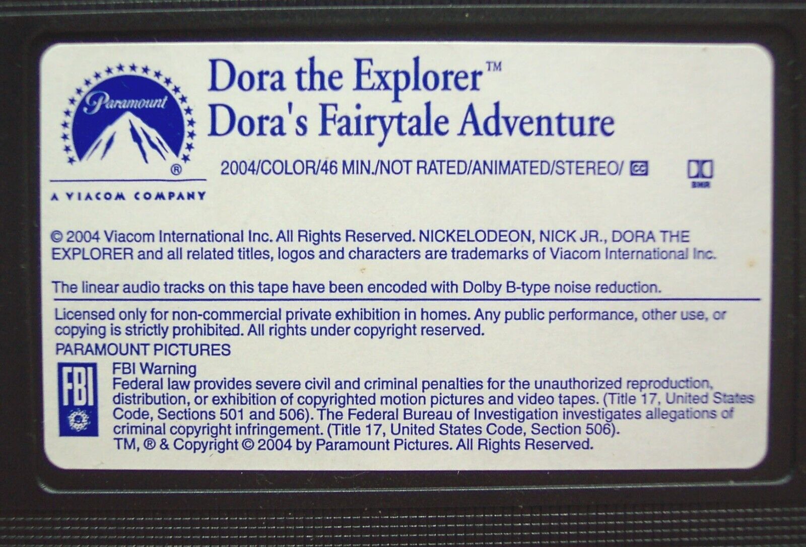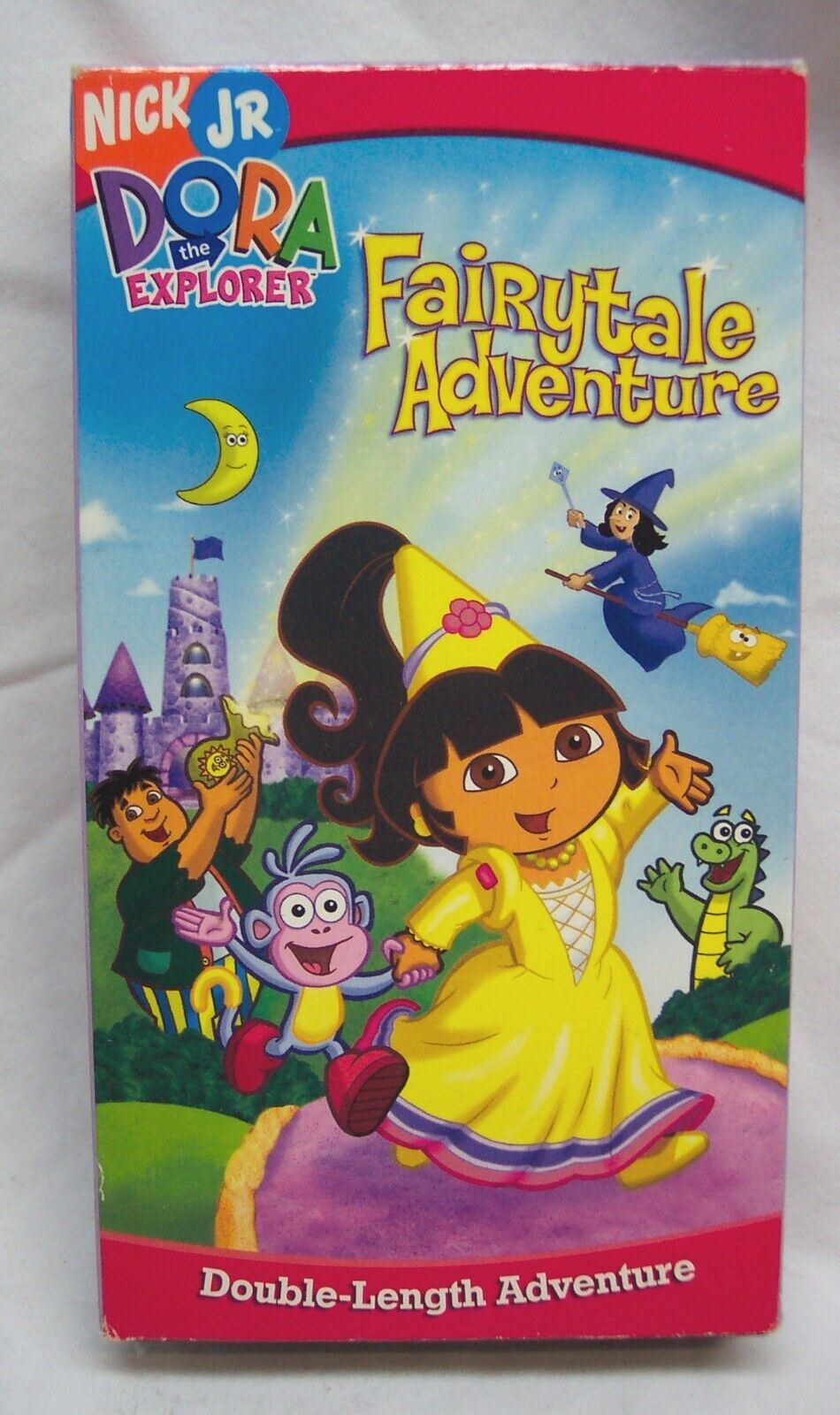 This is Vintage Nick Jr. DORA THE EXPLORER FAIRYTALE ADVENTURE Nickelodeon VHS VIDEO from 2004. It has a run-time of 46 Minutes. It is in great condition. Cardboard sleeve has very minor wear on corners. EAG o