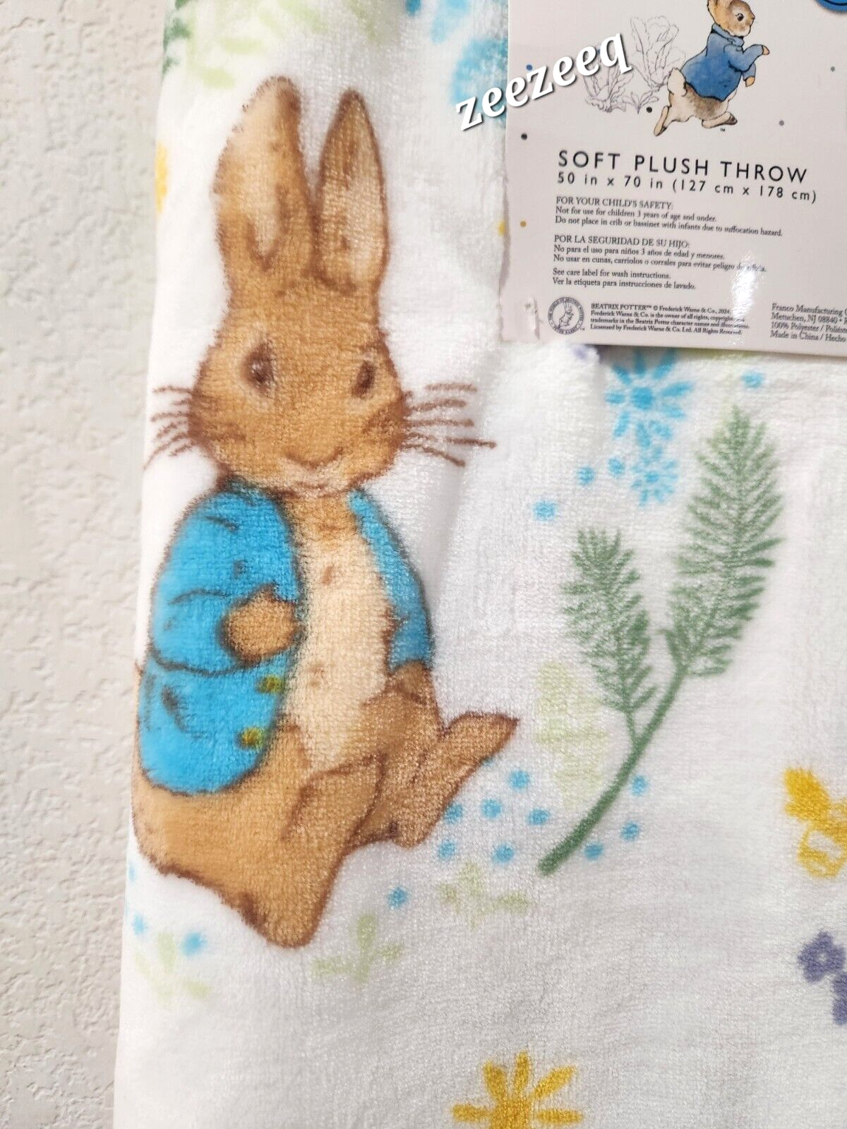 Up for sale is this adorable Easter Peter Rabbit throw blanket for your Easter decor. The blanket is sooo cute! It has a Peter Rabbit print. Beautiful colors!! Size 50" x 70". Blanket is sooo soft. NWT