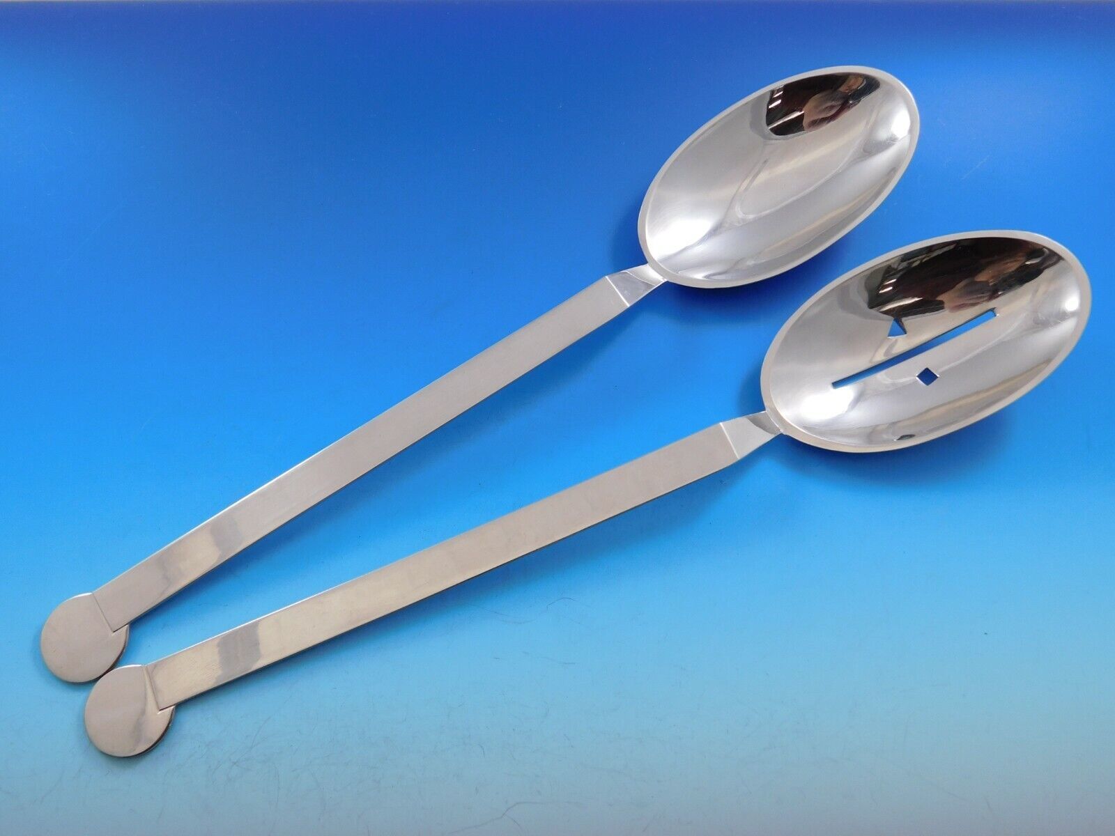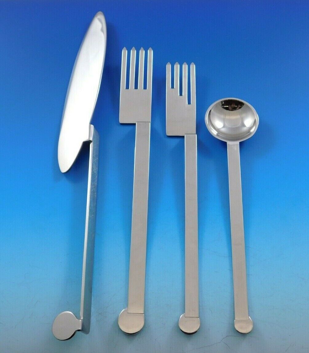 Extremely rare Bissell and Wilhite (Japan) modern design stainless steel flatware. With its modern lines and geometric handles, this stainless steel flatware pattern is a fabulous contemporary addition to your modern decor.