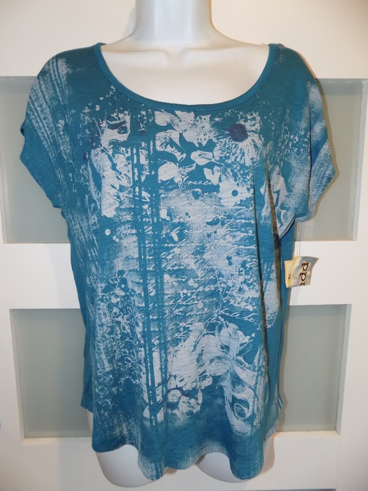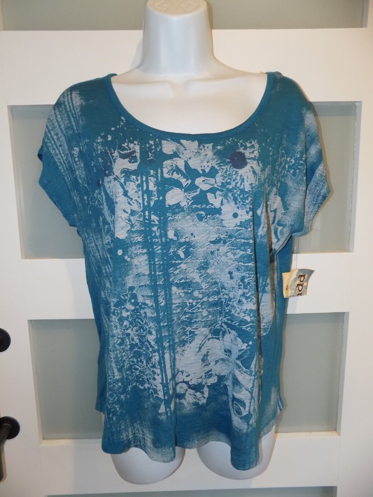 Mudd Blue Graphic Shirt Cap Sleeve Size S Women's NEW