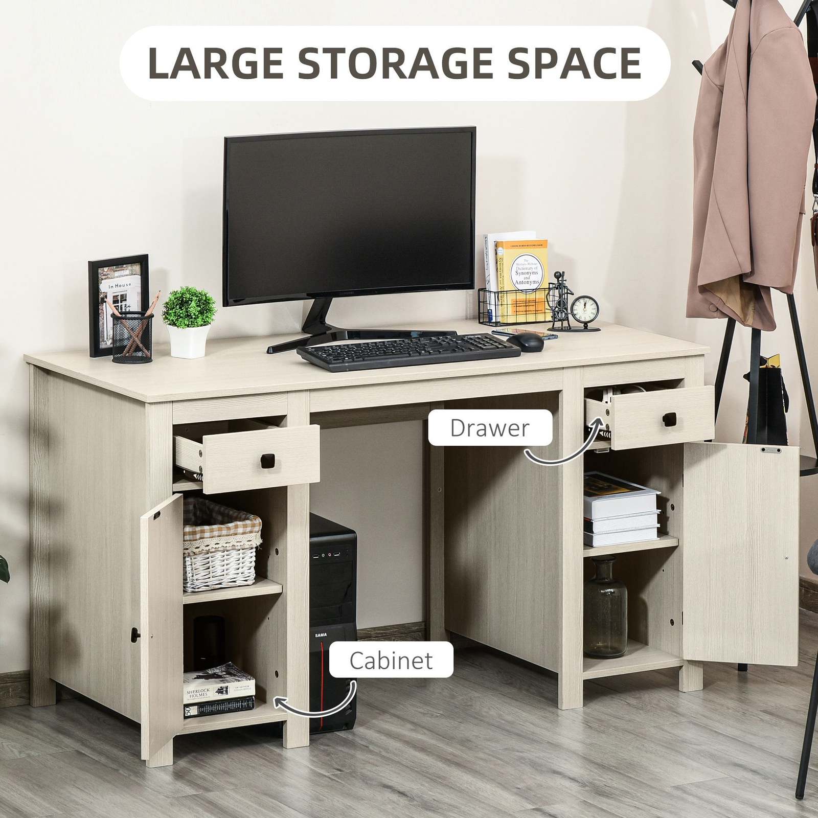 Farmhouse Computer Desk w/ Storage, Cream White