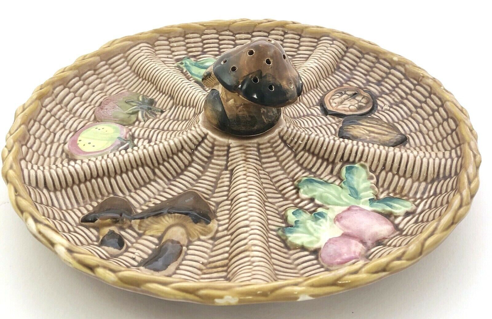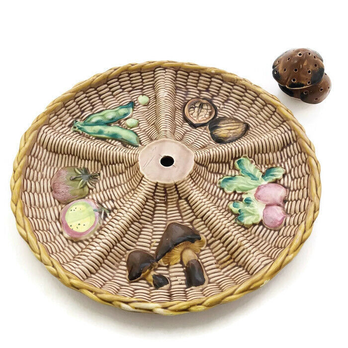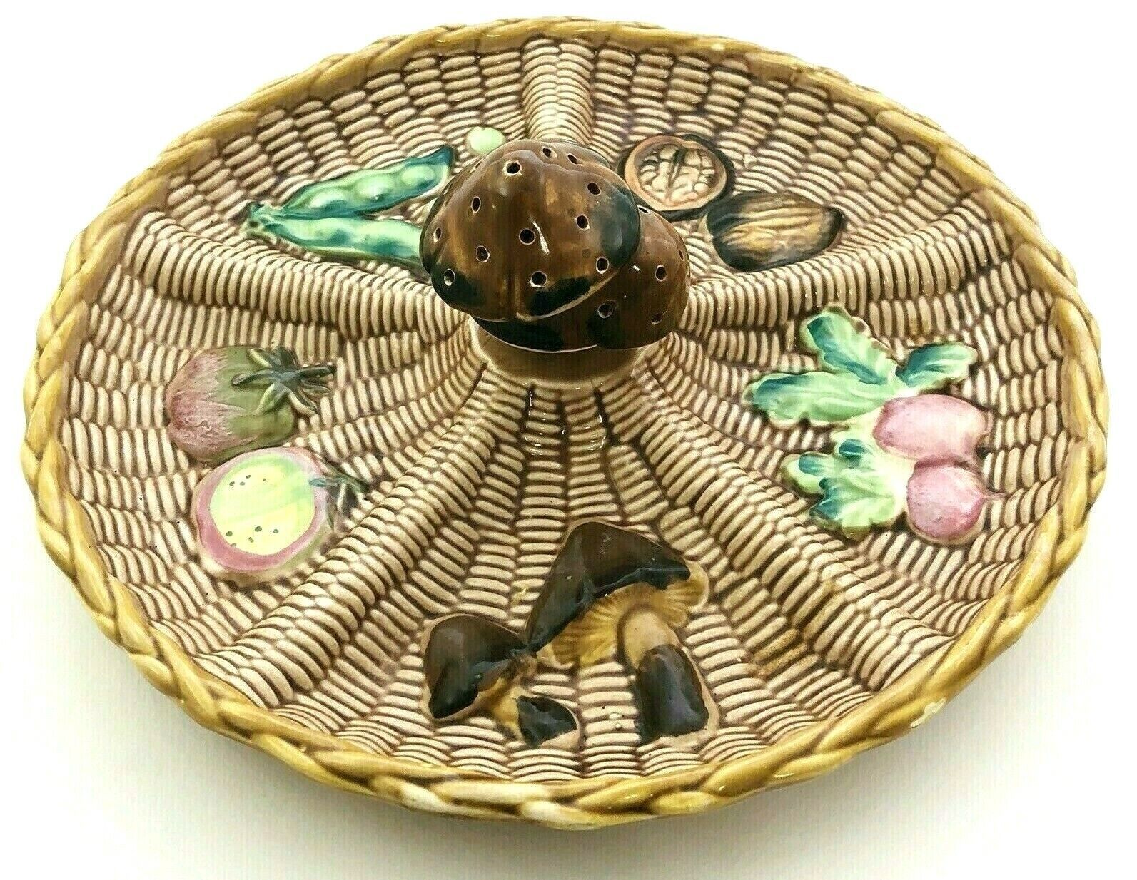 Vintage Tilso Pottery Divided Serving Plate Majolica Basketweave Vegetables