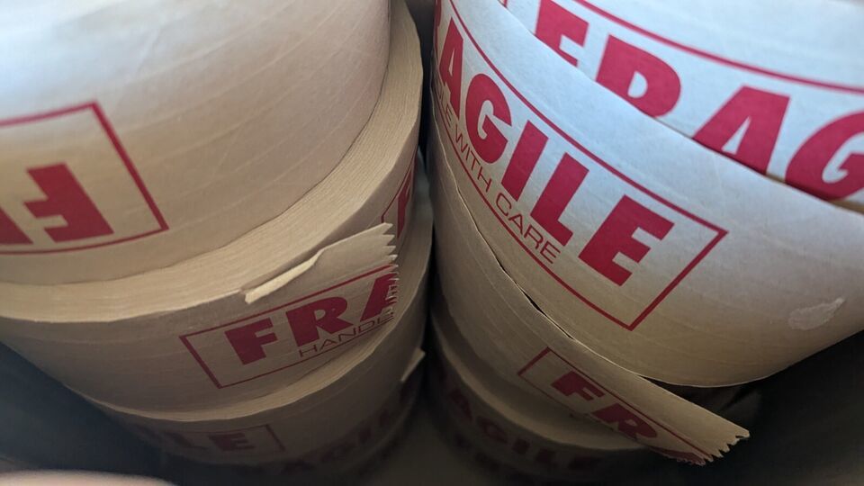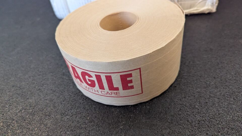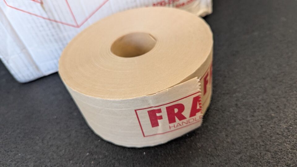10 New Uline Reinforced Kraft Tape - "Fragile - Handle with Care", 3" x 450'