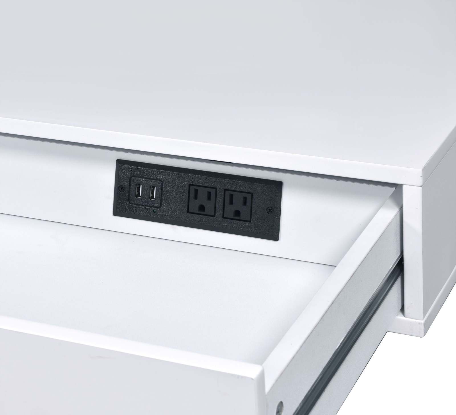 Functional Design with USB Port: This rectangular writing desk features a built-in USB port and plug, offering convenient charging options for your electronic devices while working or studying.