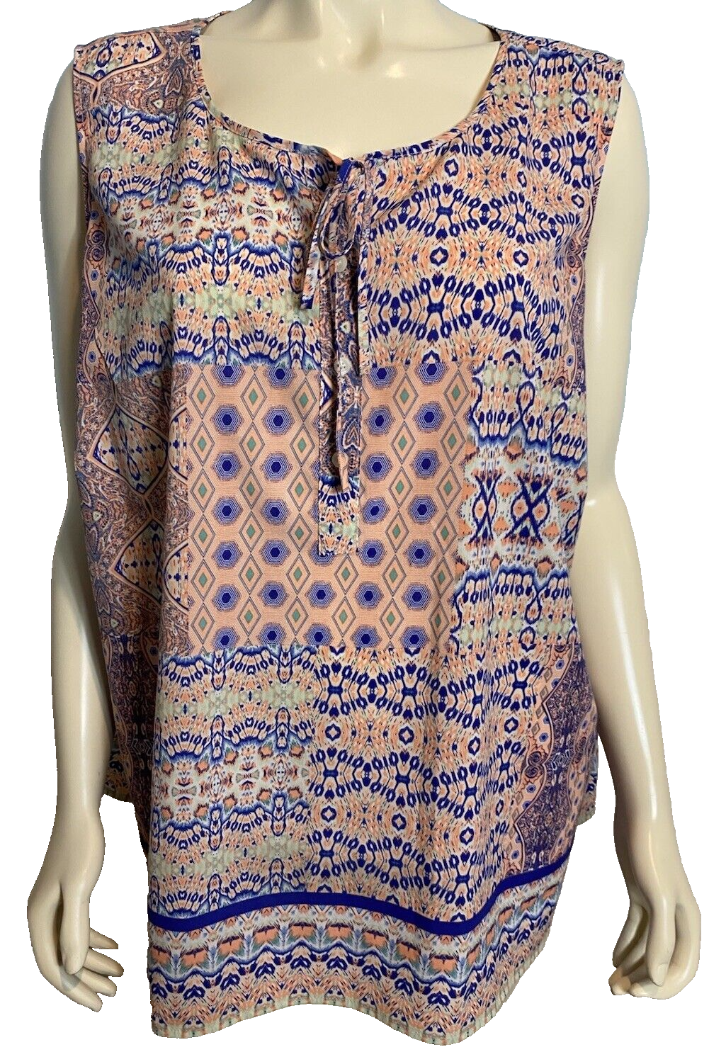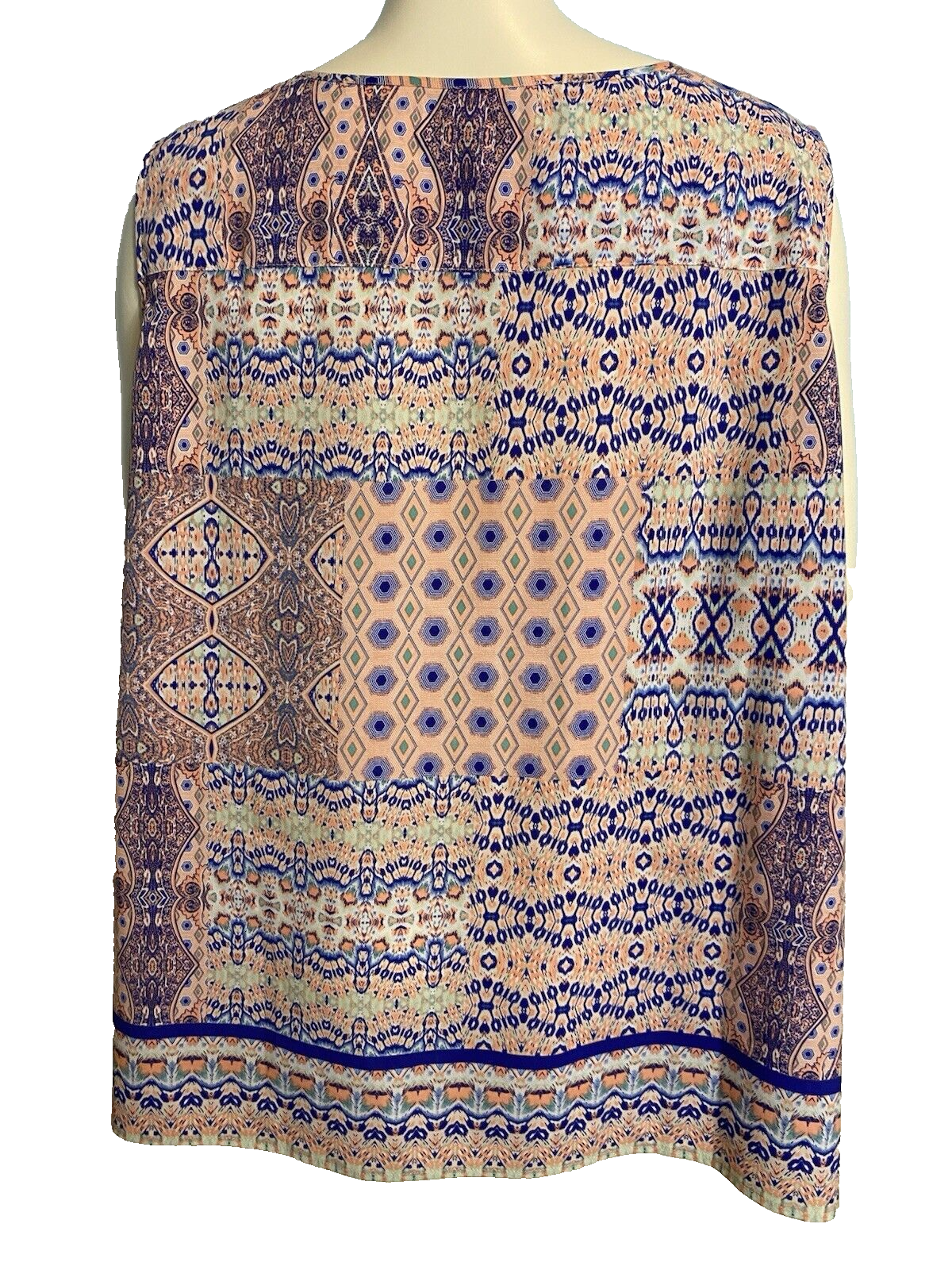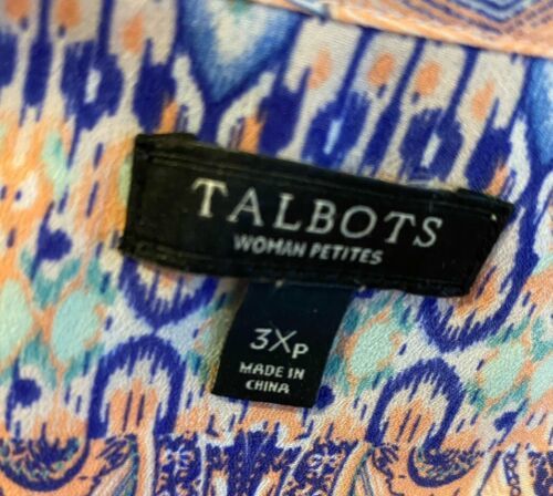 Talbots Woman Petites Coral, White, Blue Geometric Pr V Neck Sleeveless Size 3Xp
