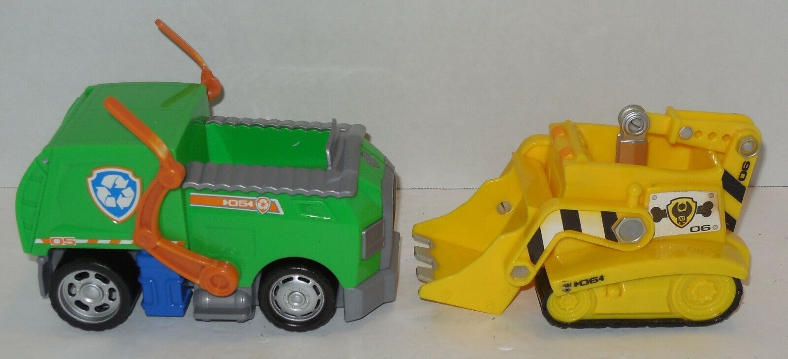Paw Patrol Spin Master Green Garbage Truck Yellow Construction Vehicle Lot
