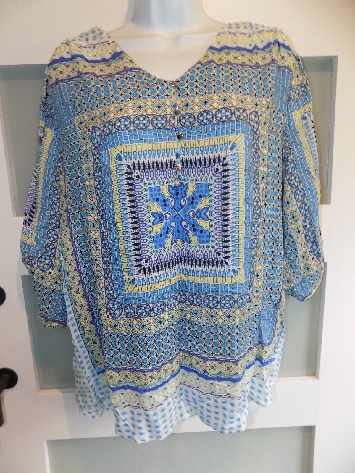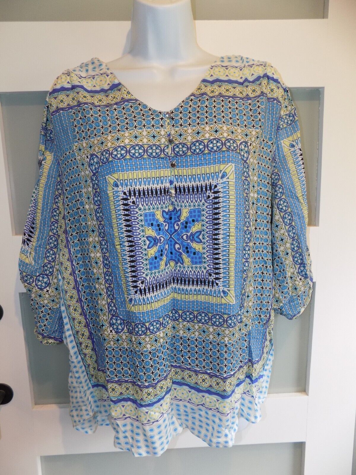 Tribal Blouse Multi Color Print 3/4 Sleeve Blouse Size L Women's NWOT