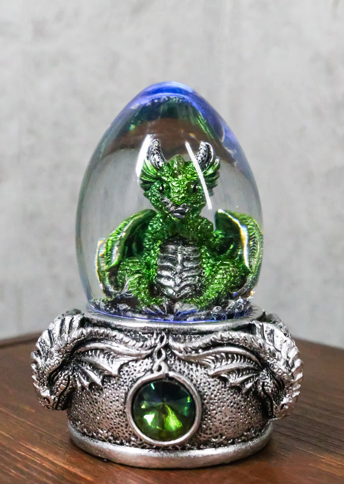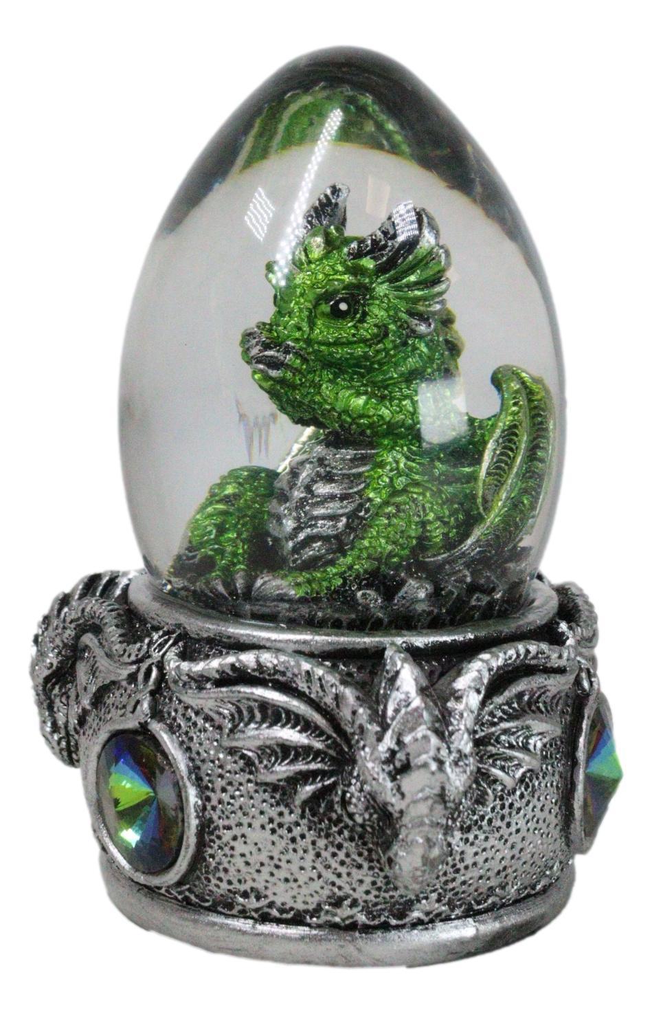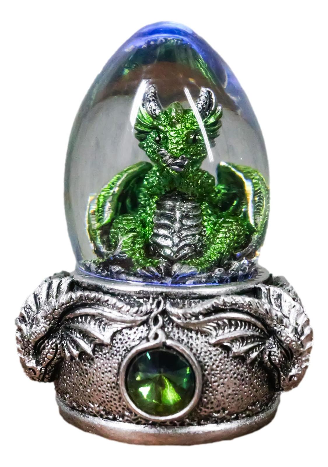 Speak No Evil Green Wyrmling Dragon In Colorful LED Acrylic Glass Egg Figurine