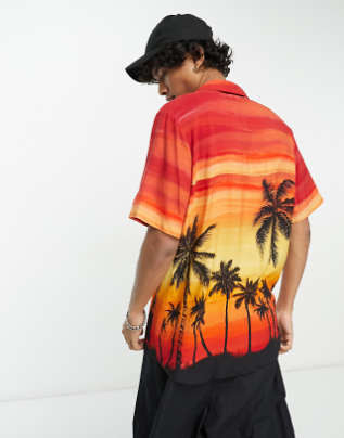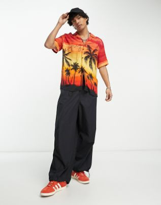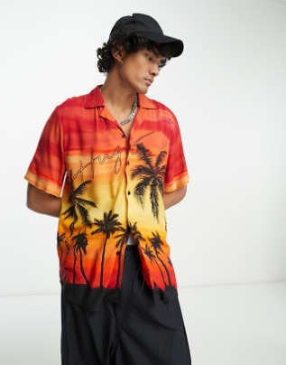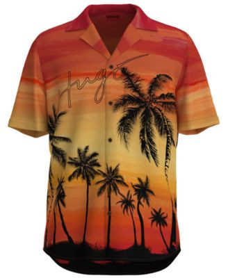 HUGO helps you make a statement with this Straight-fit shirt, showcasing a sunset-inspired print and signature logo graphic at the front.