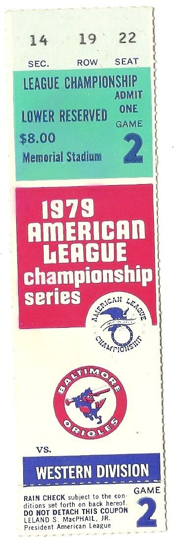 1979 ALCS Game 2 ticket stub Orioles Angels Championship