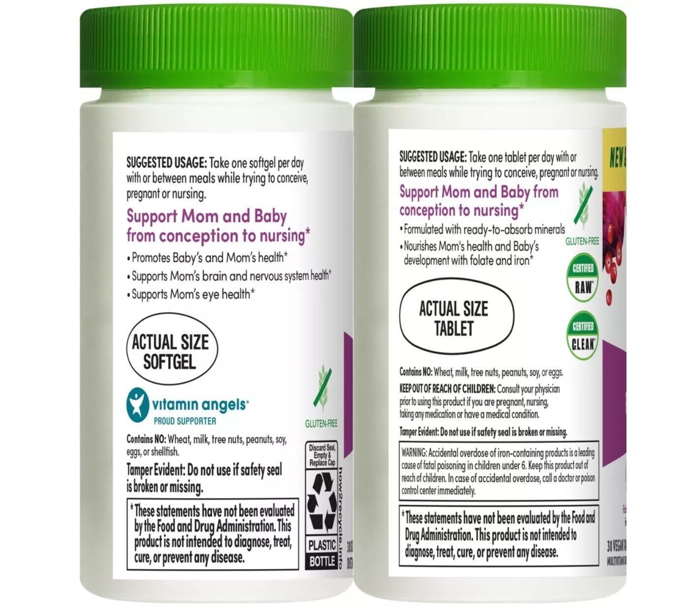 Caution Statements: Keep out of reach of children. Consult a physician before using this product if you are pregnant, nursing, taking medications, or have a medical condition. WARNING: Accidental overdose of iron-containing products is a leading cause of fatal poisoning in children under 6. Keep this product out of reach of children. In case of accidental overdose, contact a doctor or poison control center immediately. Tamper Evident: Do not use if safety seals on bottles are broken or missing.