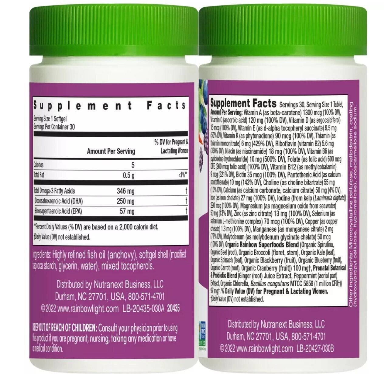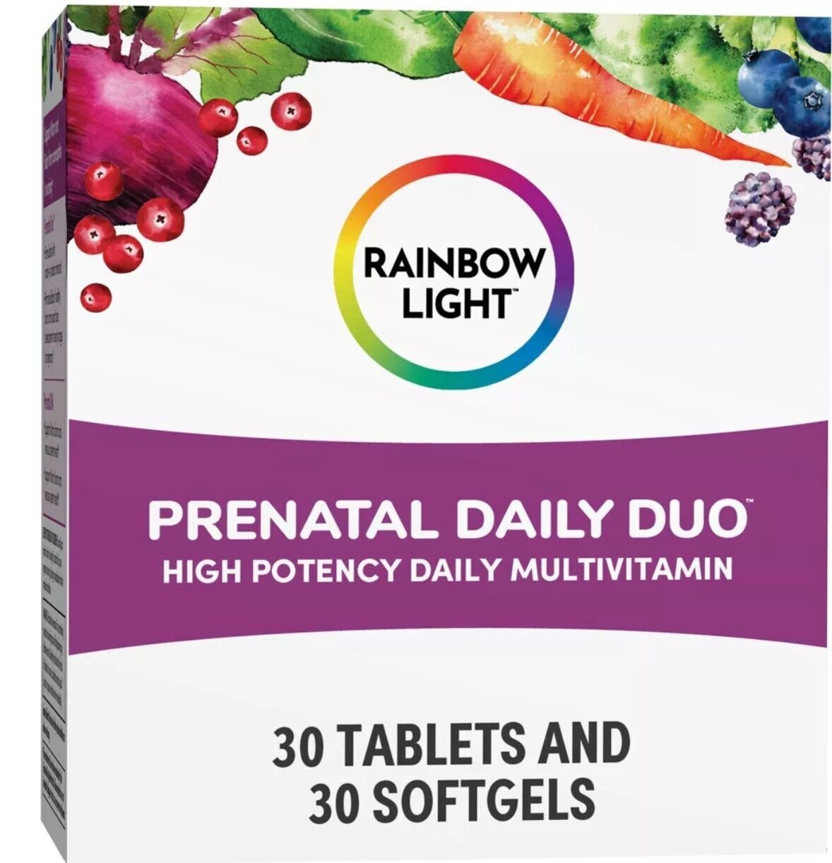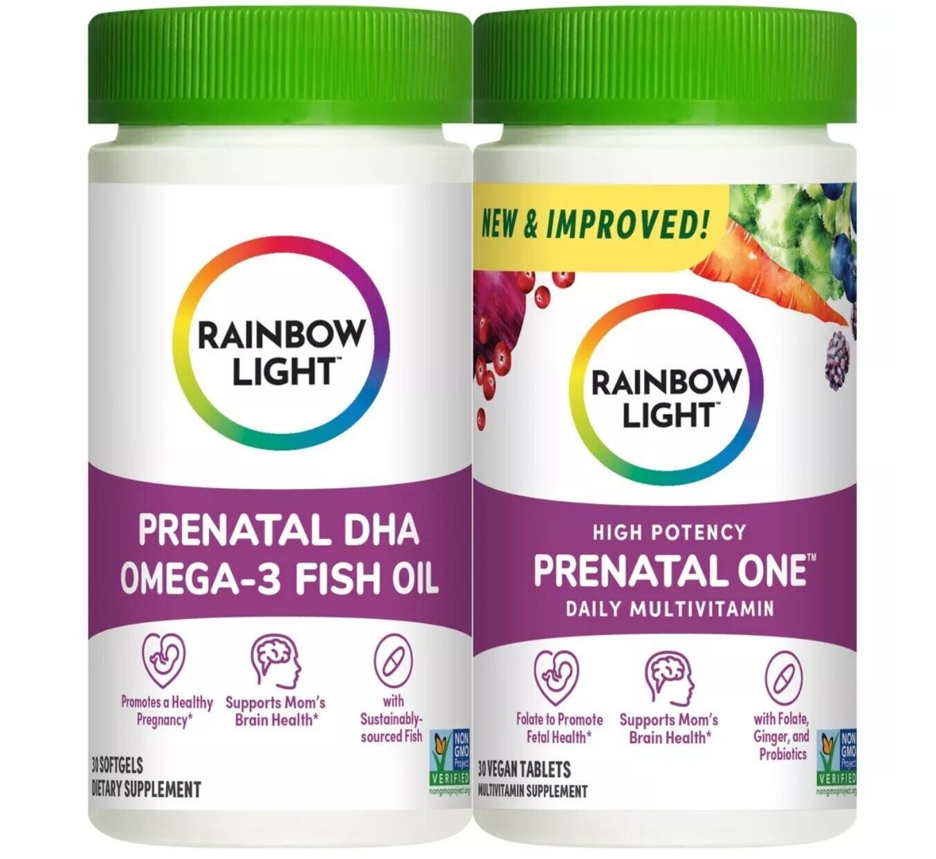 PRENATAL MULTIVITAMIN: The Rainbow Light Prenatal Daily Duo includes a 30-count bottle of Prenatal One Multivitamin and a 30-count bottle of Prenatal DHA Omega-3 Fish Oil.