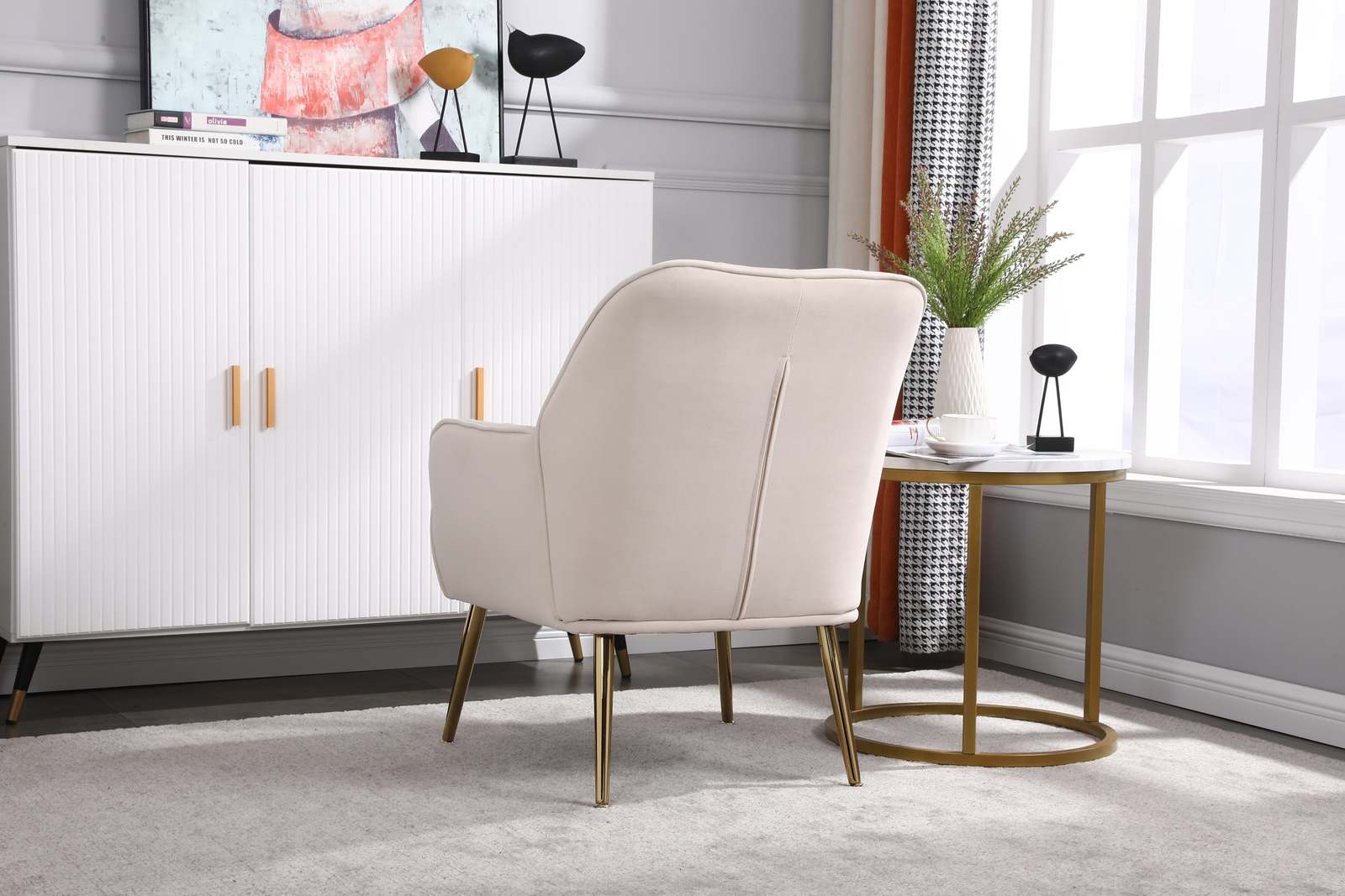 Velvet Sherpa Mid-Century Armchair (Beige)