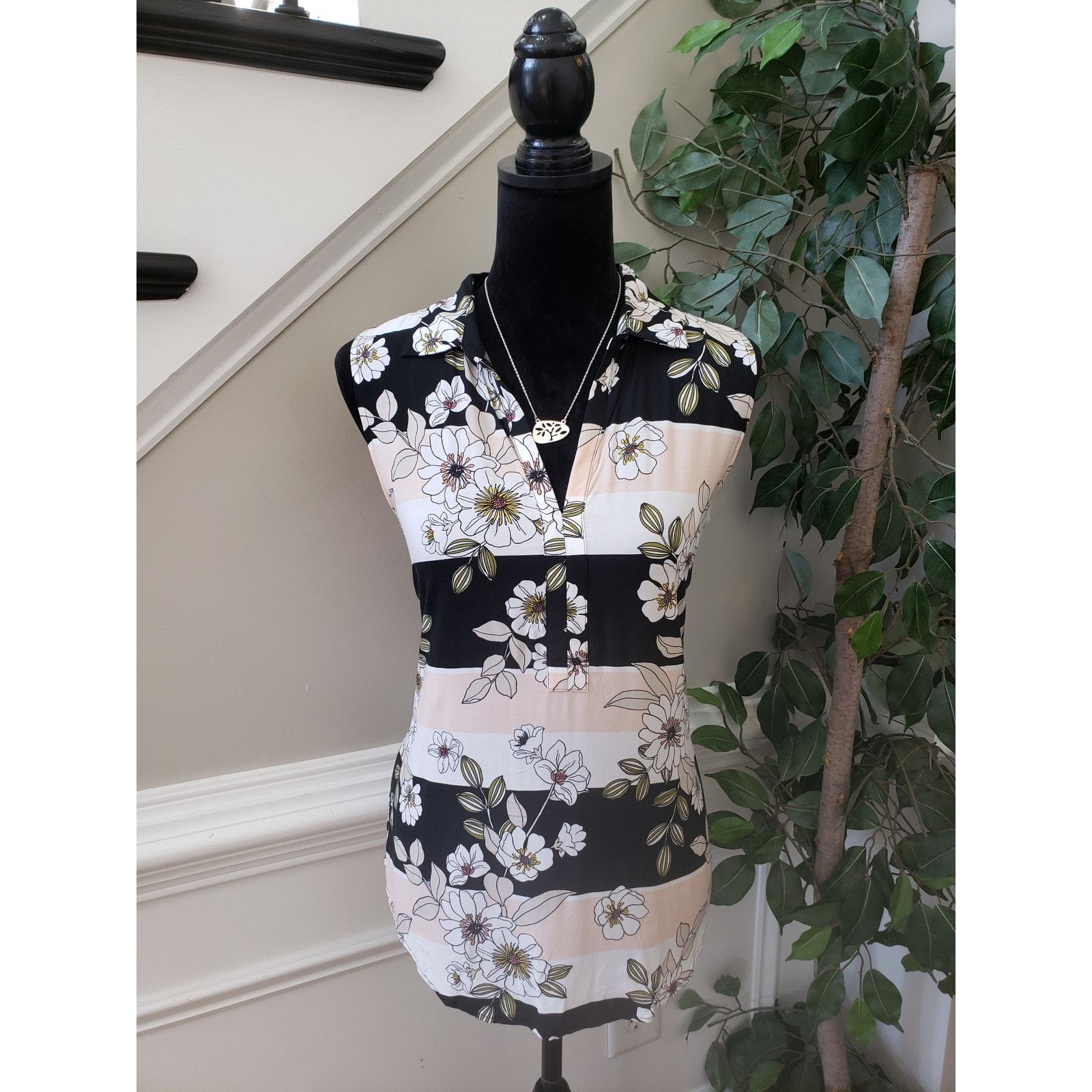 LOFT Outlet Blouse Top Women's Small Multi Floral Rayon Sleeveless V-Neck Collar