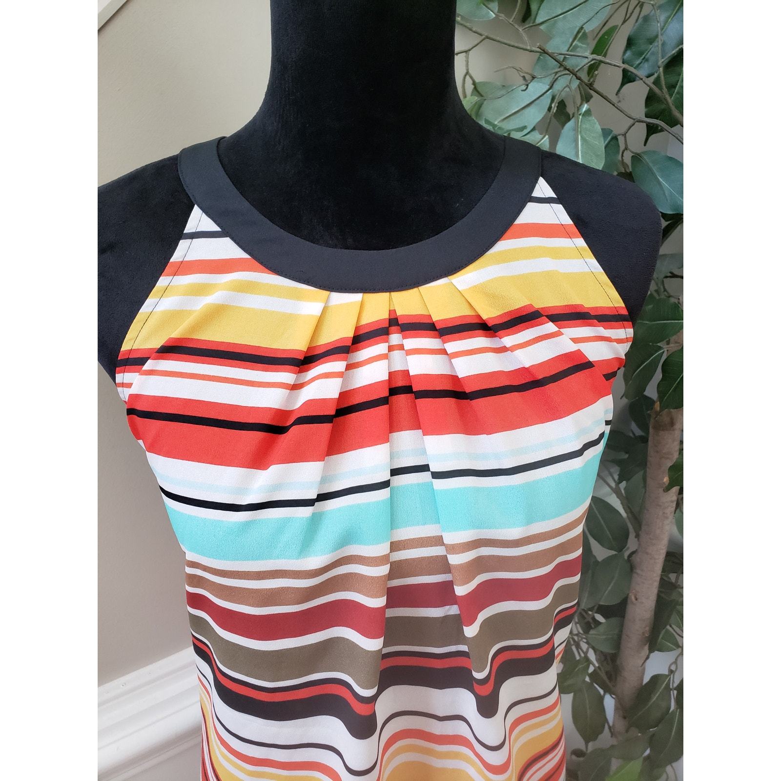 7th Avenue New York & Company Tank Top Women L Multi-Striped Pleated Halter Neck