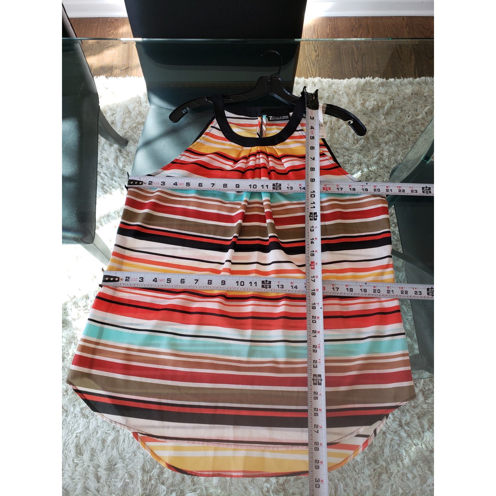 7th Avenue New York Company Tank Top Women L Multi-Striped Pleated Halter Neck