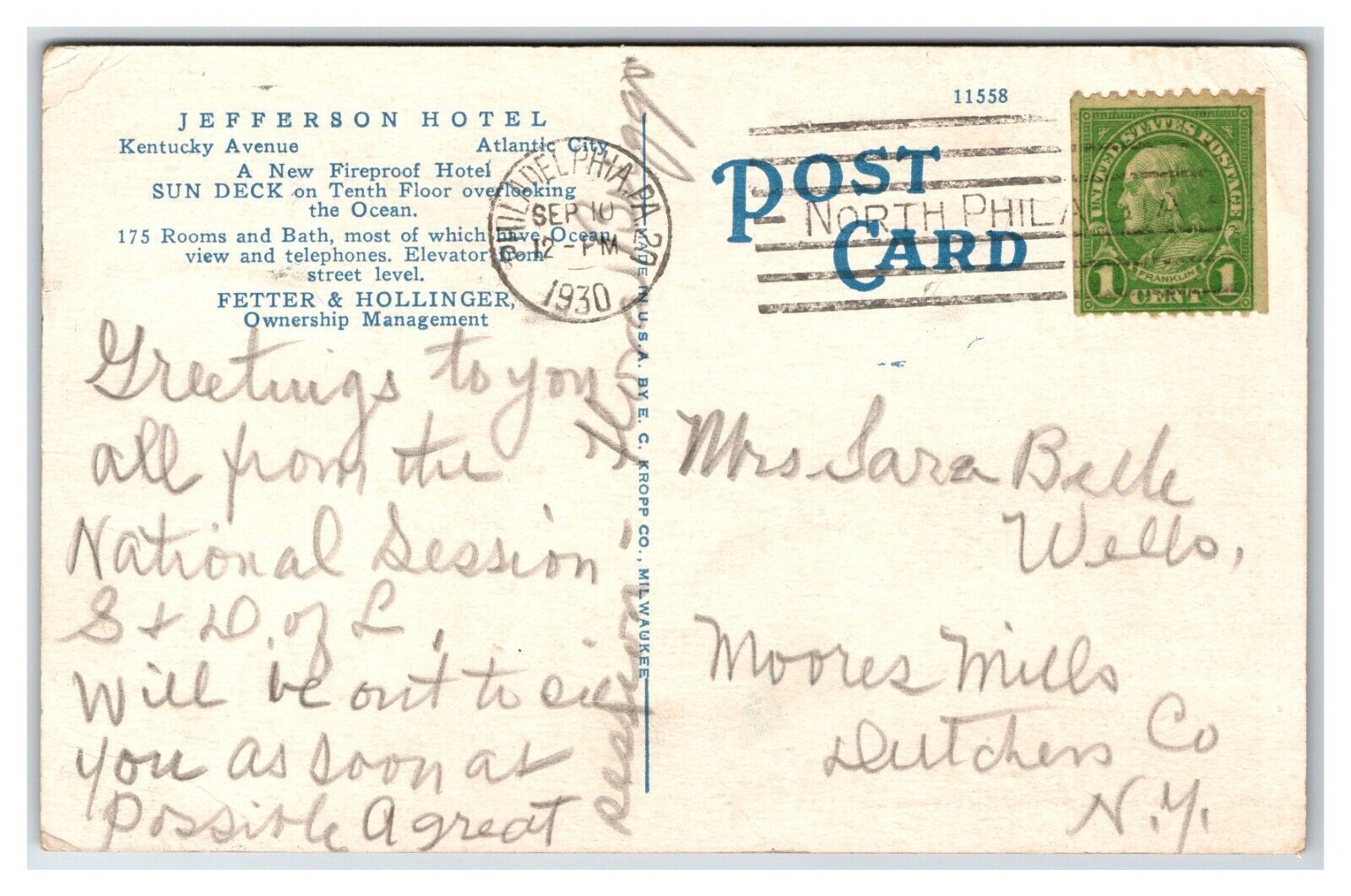 Hotel Jefferson Atlantic City New Jersey NJ WB Postcard XC6