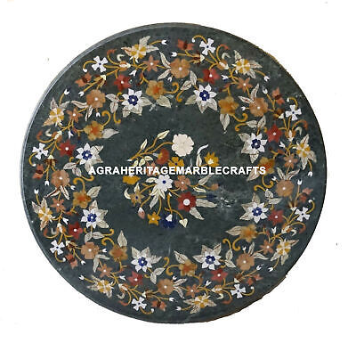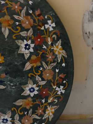 30" Green Marble Coffee Table Top Dining Coffee Marquetry Handmade Hallway Decor