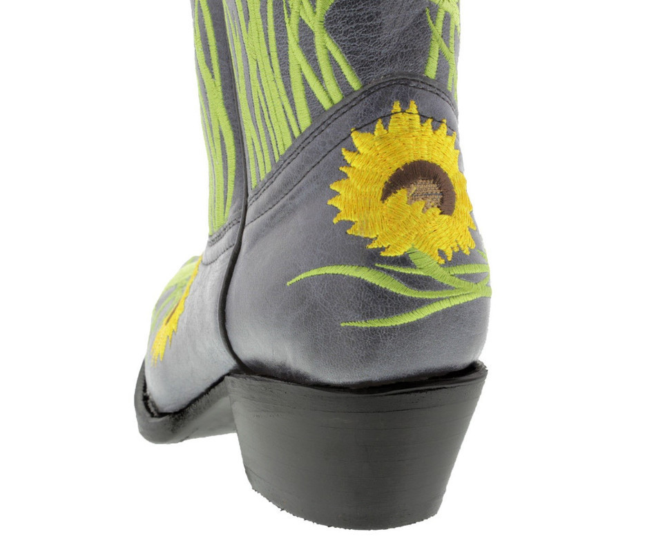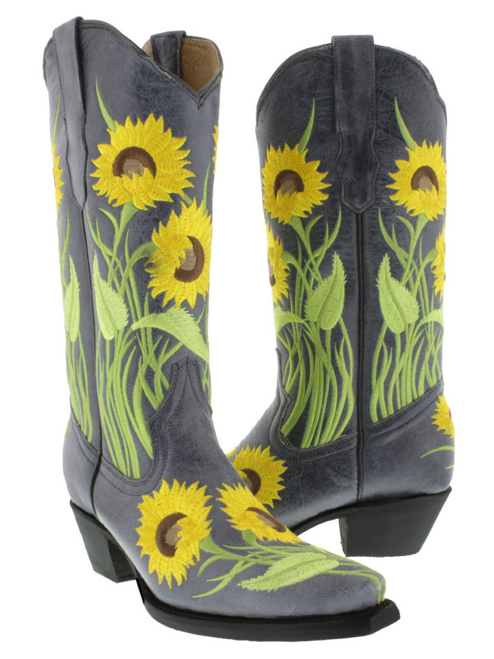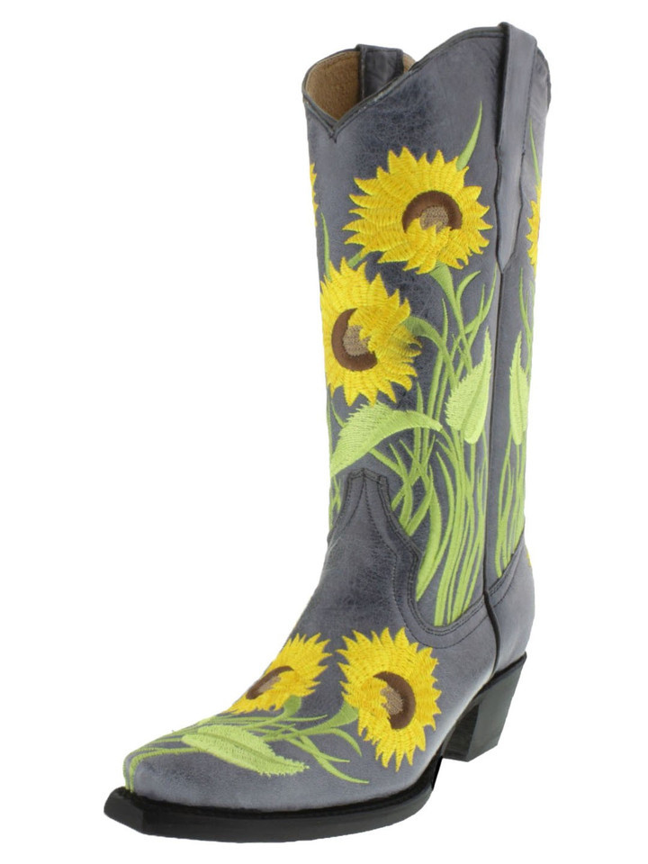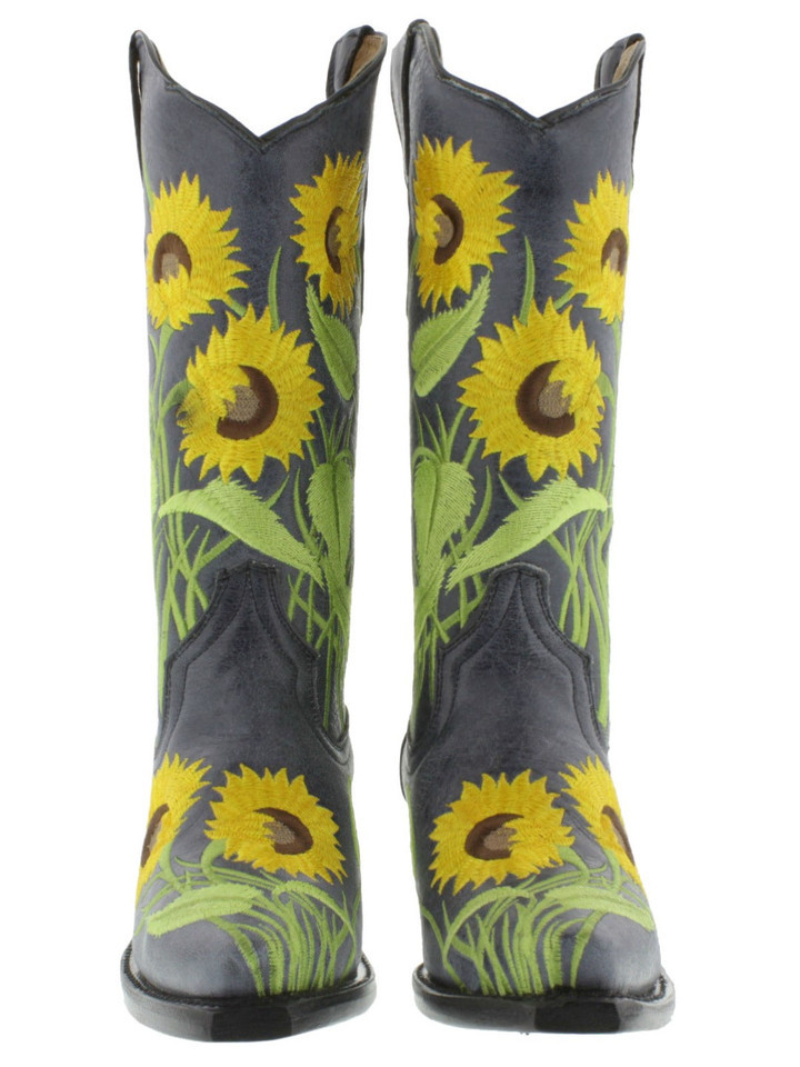 Womens Western Rodeo Boots Denim Blue Leather Sunflower Embroidered Snip Size 5
