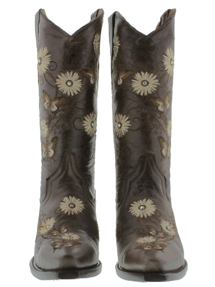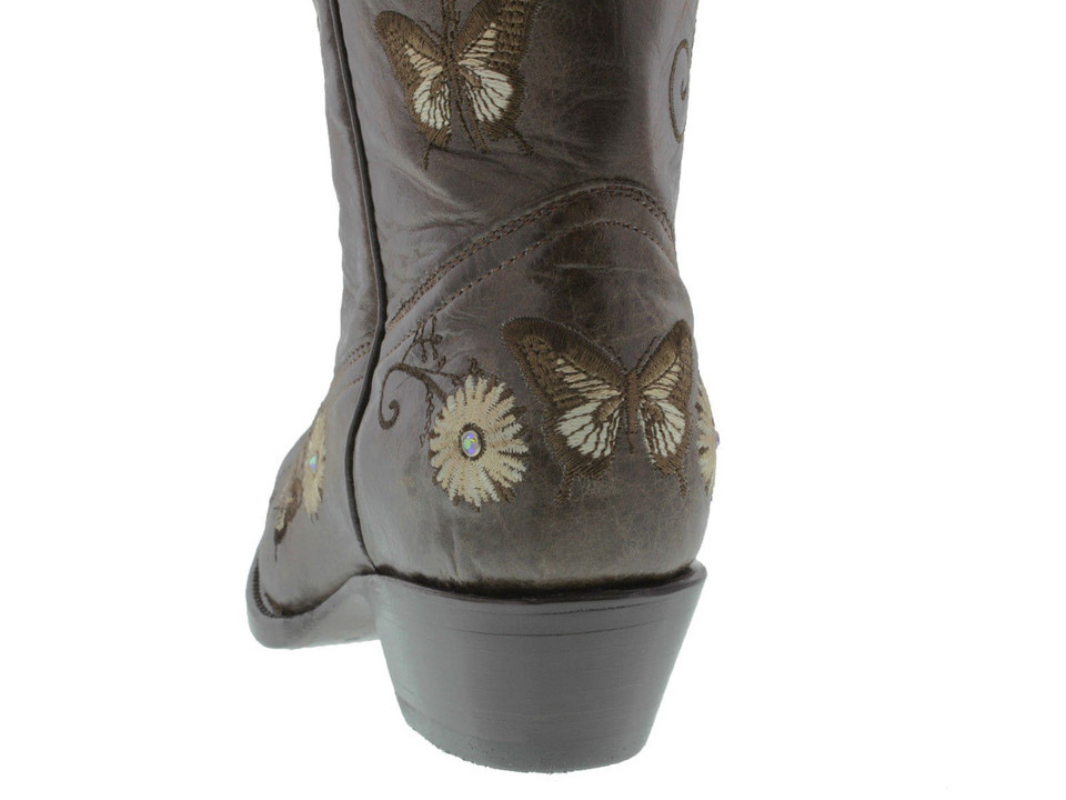 Womens Western Rodeo Boots Brown Leather Butterfly Embroidered Size 9.5-11