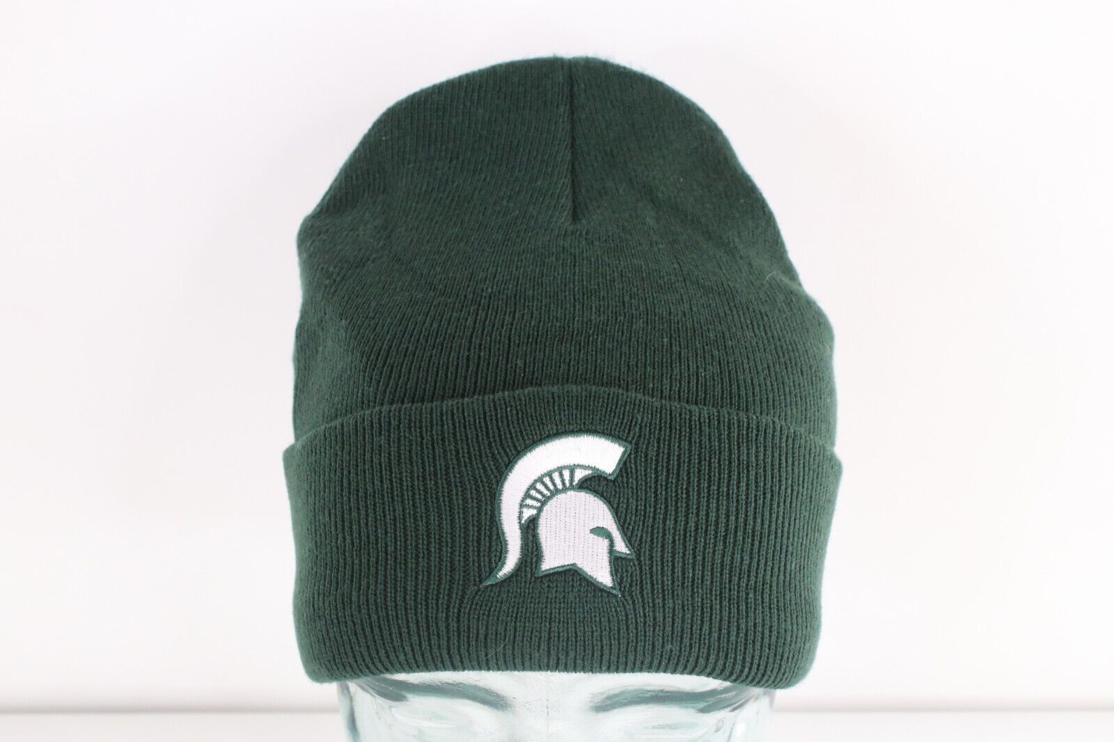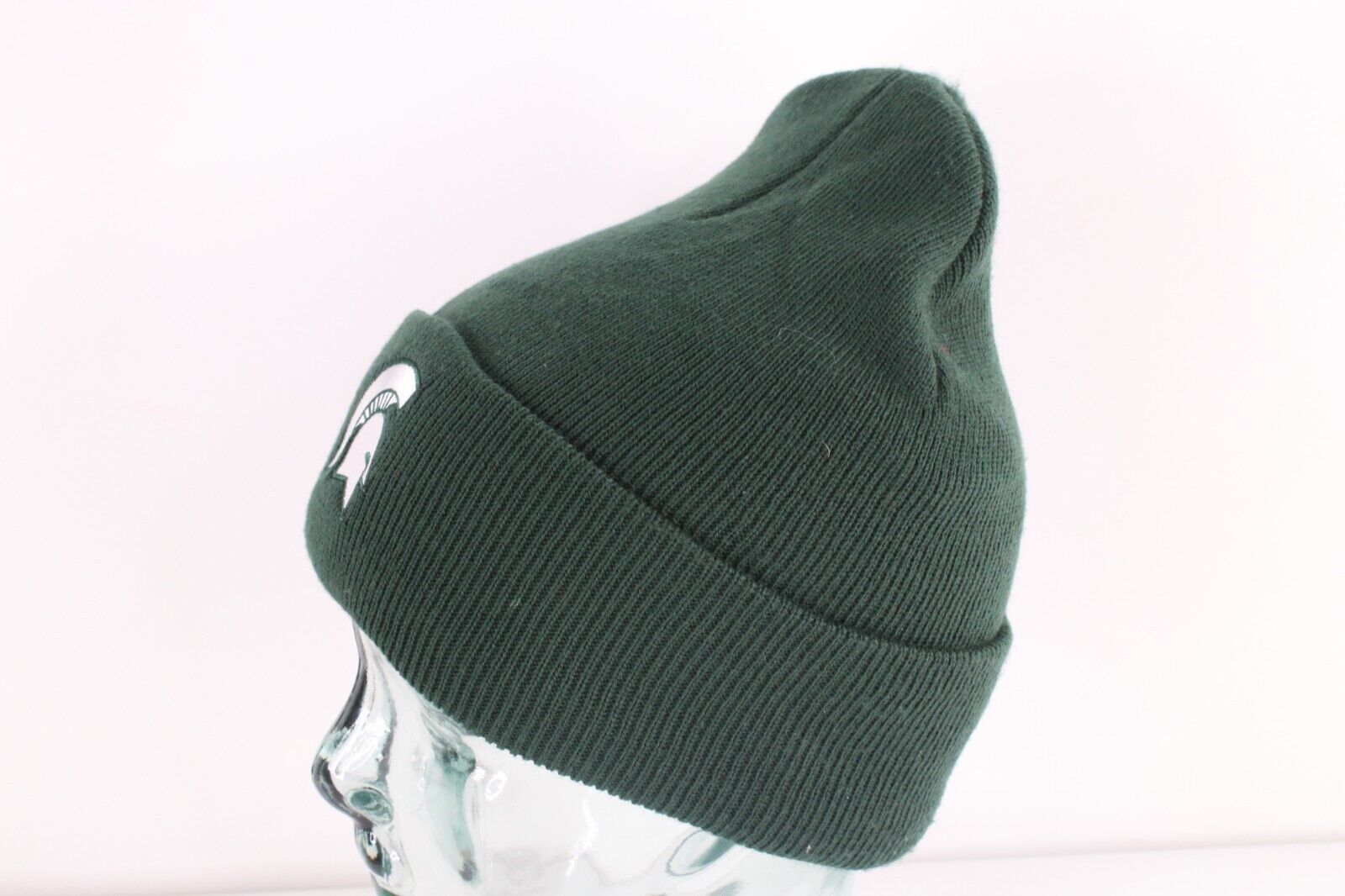 Vtg Michigan State University Fleece Lined Ribbed Knit Winter Beanie Hat Green
