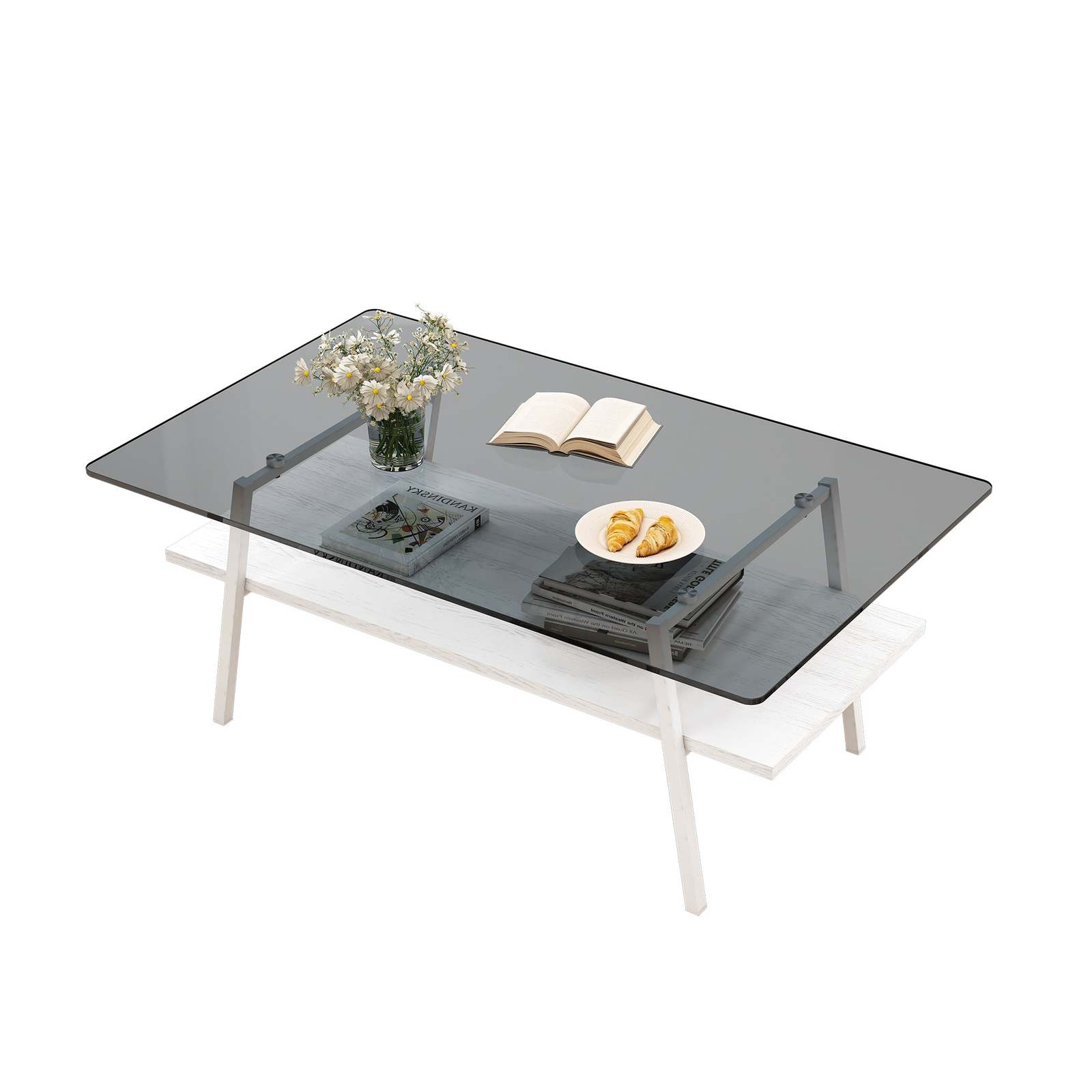 2.Stylish Design: This coffee table features a sleek and modern design with a tempered glass top. The upper panel is made of gray-colored glass, adding a touch of elegance to living space.