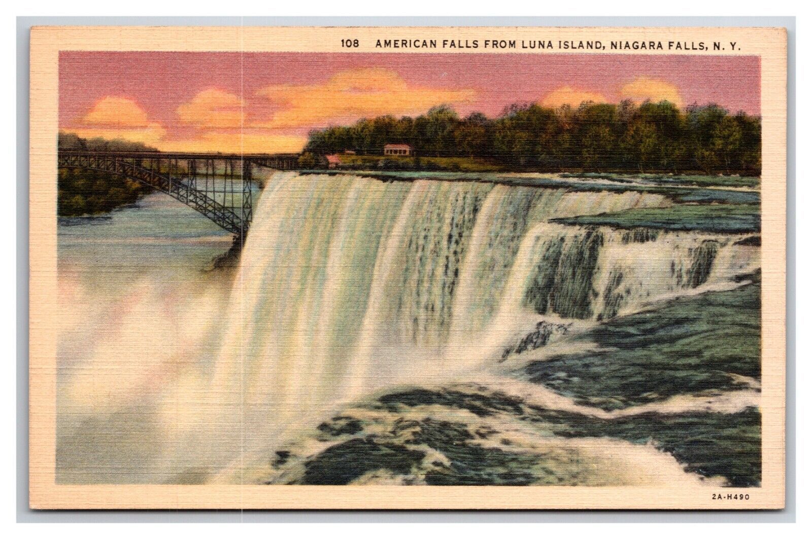 American Falls From Luna Island Niagara Falls New York NY UNP Linen Postcard XC8
