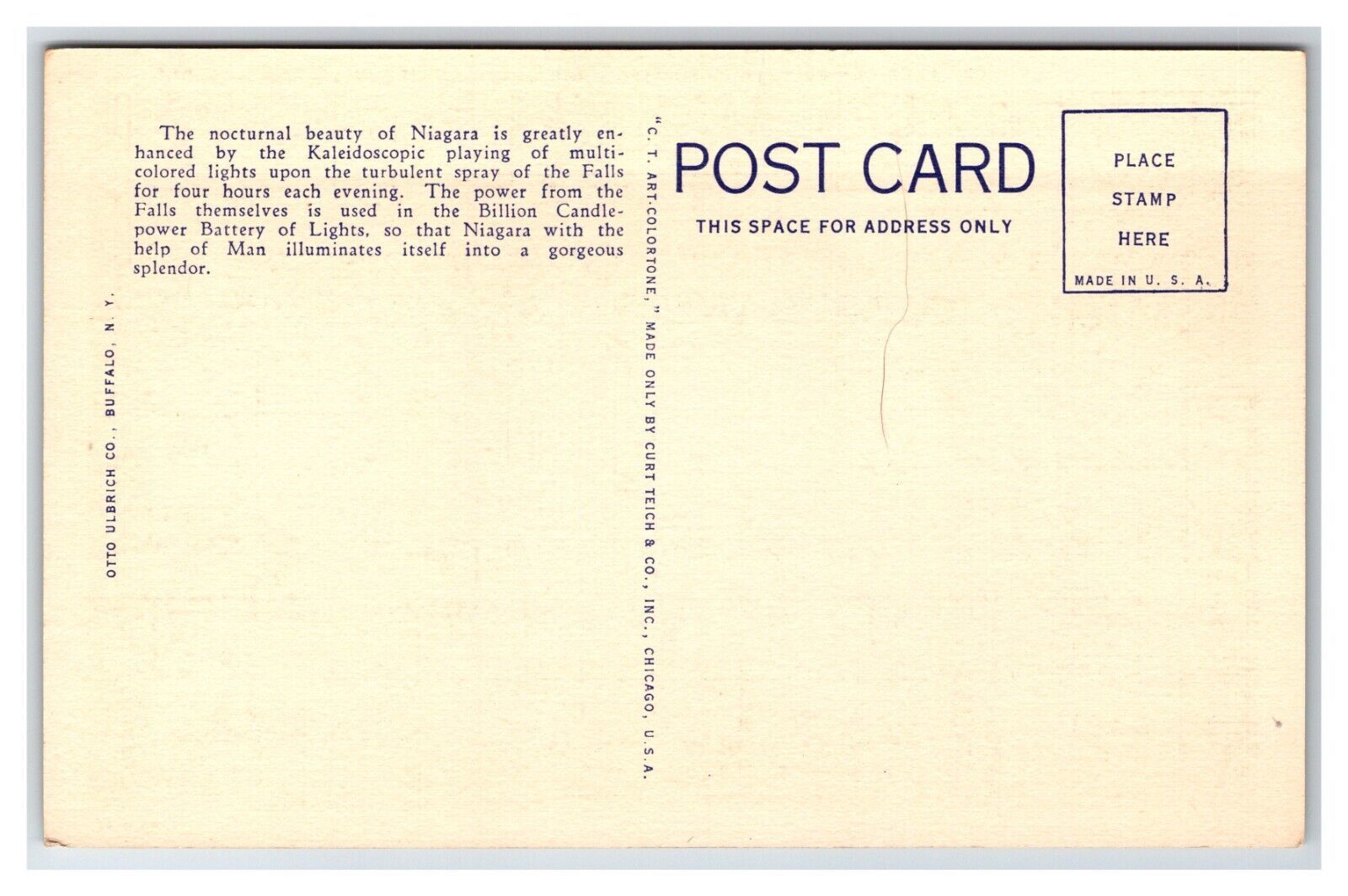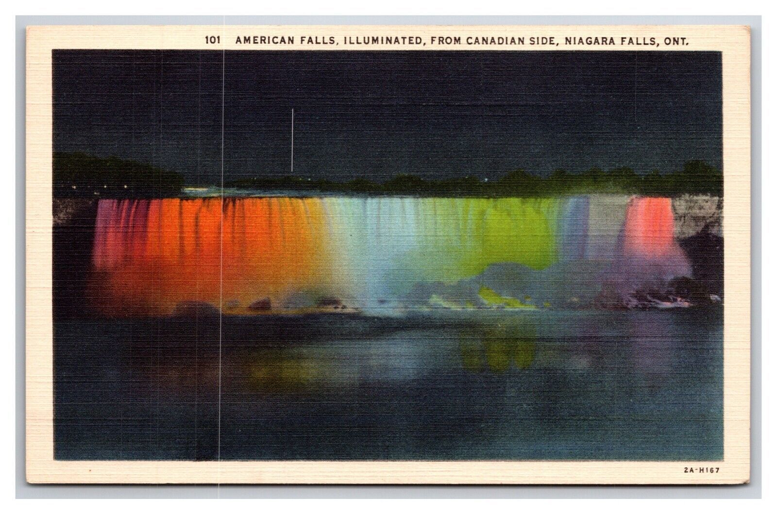 American Falls Illuminated Niagara Falls New York NY UNP Linen Postcard XC8
