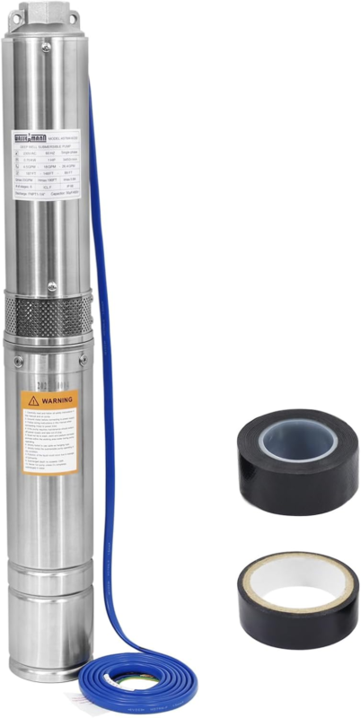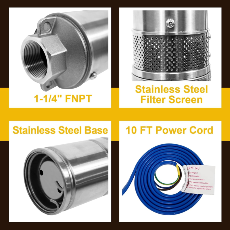 10FT Cable,1Hp,115V/60Hz,34Gpm,196Ft Head,Stainless Steel Single-Phase Water Well Pump for Cities Farmland Irrigation and Home Use