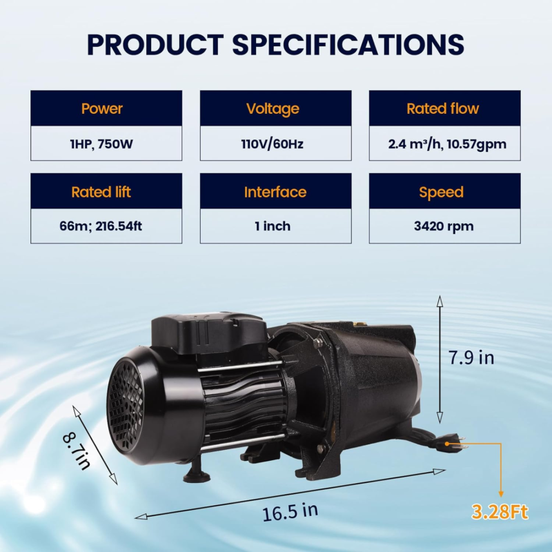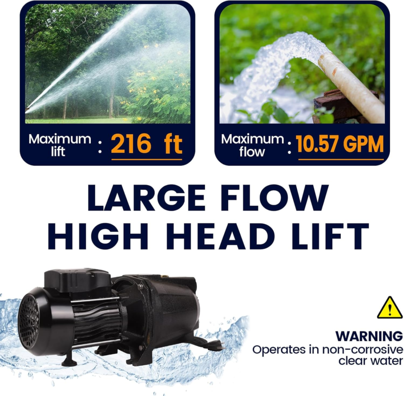Multiple Use Scenarios - Whether you need to water your lawn, irrigate your farm, or remove excess water from your garden, the 1HP shallow well jet pump is a reliable and durable choice.