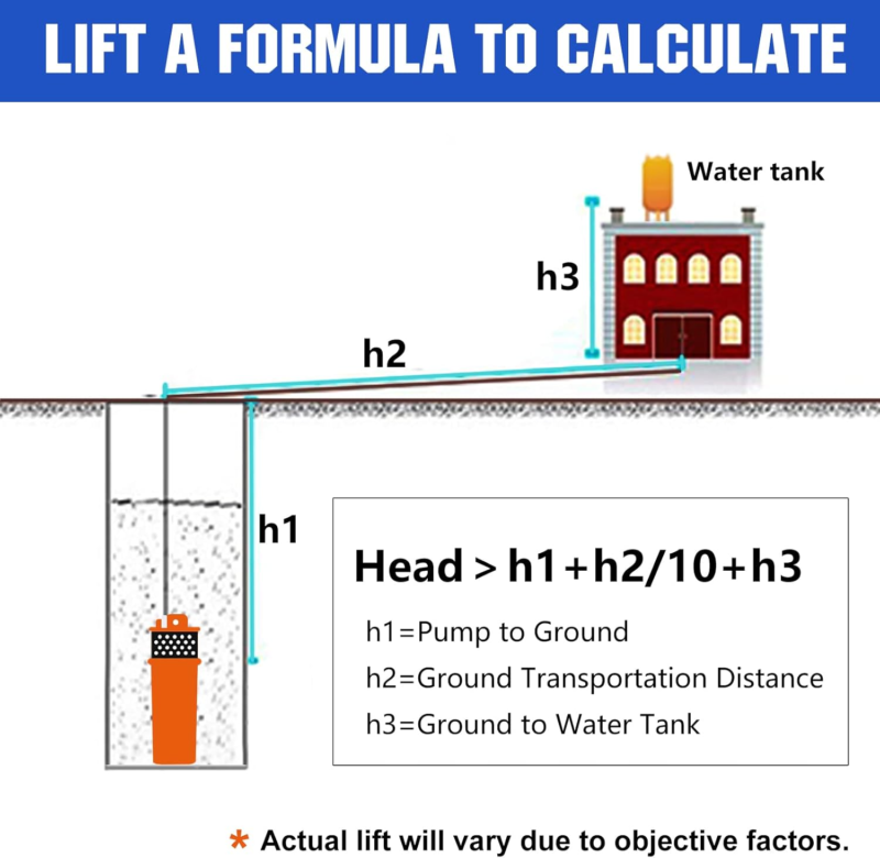 24V Submersible Deep Well Water Pump with 10Ft Cable 1.6GPM 4'' 5A, Max Lift 23