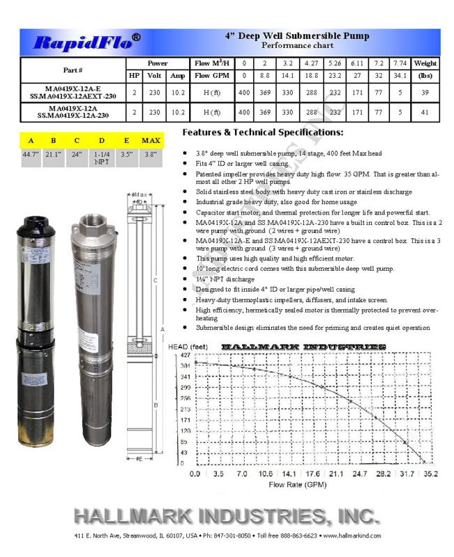 Deep Well Pump, 2HP, Max 400'/35Gpm, and similar items