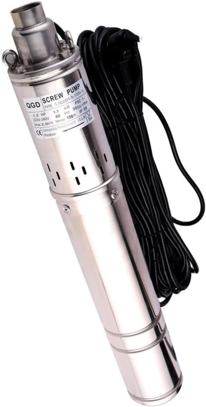 3.5" Deep Well Pump 1.5Hp Screw Well Pump Submersible Well Water Pump 220-240V/60Hz Max.Head 120M/394Ft Flow 11GPM Rotary Vertical Centrifugal Well Pump for Home Garden Agricultural,Pump for Well