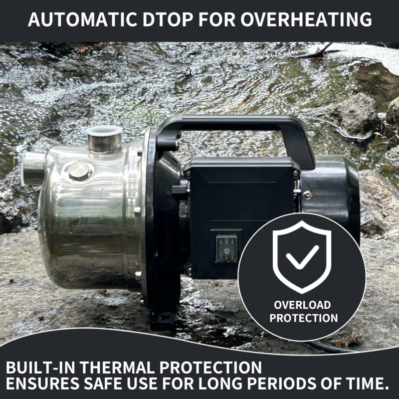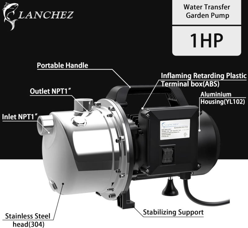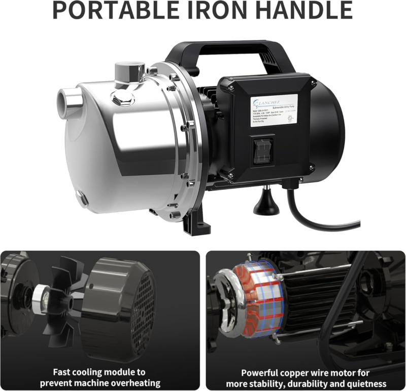 ?Portable and Durable Design?This Lawn Pump is with a easy-to-carry handle for portability. Corrosion-resistant stainless steel of the portable electric pump head for against corrosition and abrasion extends product life and is easy to clean