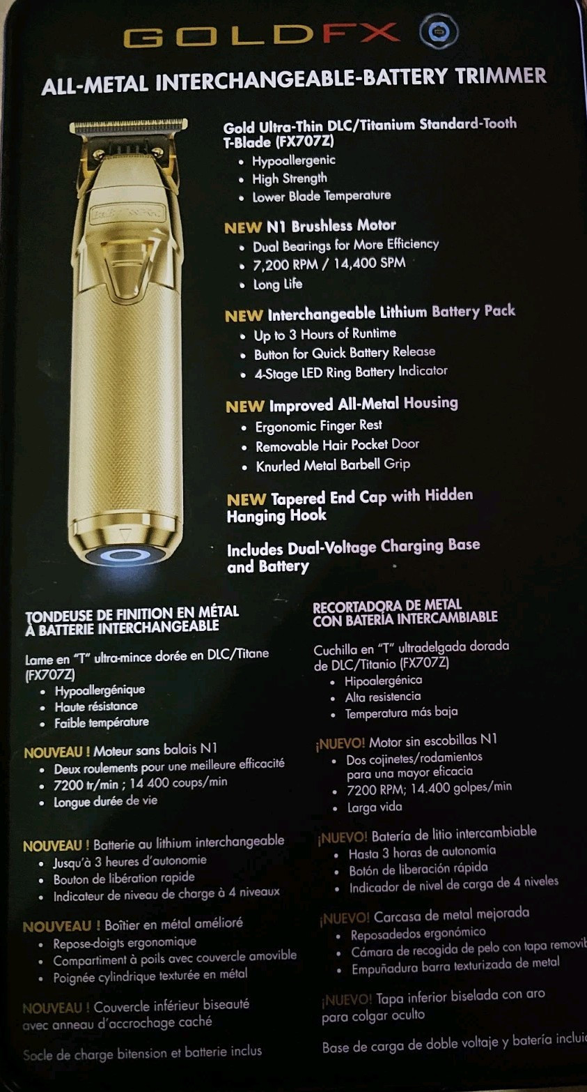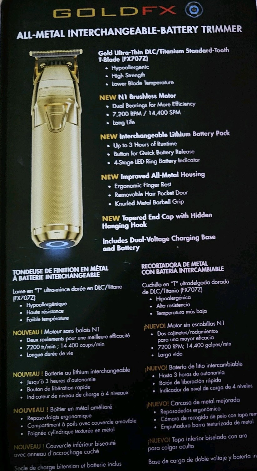 Babyliss Pro FX799G FXONE GoldFX Cordless Hair Trimmer, USB-C Charge.