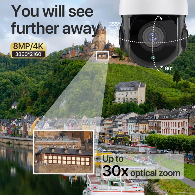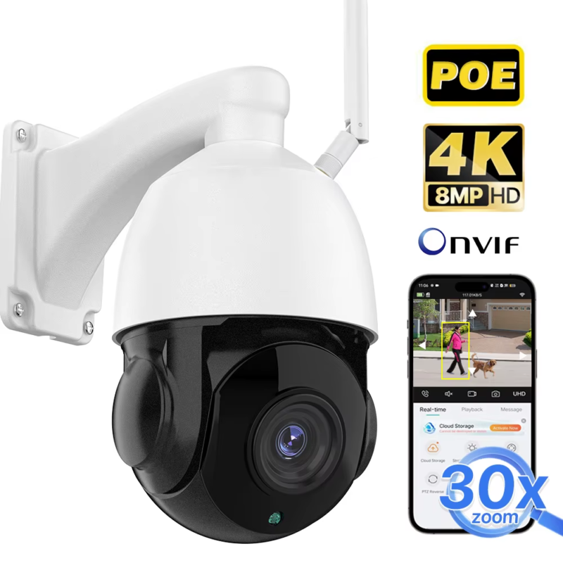 Wifi 4K 8MP POE PTZ Camera Waterproof 5MP 30X Zoom Auto Tracking Speed Dome Came